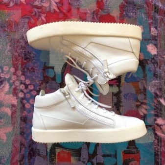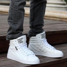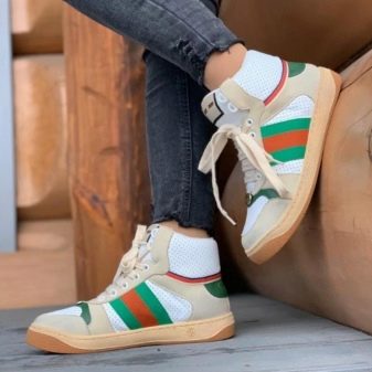 - Yüksek. Görünümünüze parlak ve önemsiz olmayan notlar eklemek istiyorsanız, bu spor ayakkabı türü mükemmeldir. Birçok moda tutkunu yüksek modeller seçer. Bu tür ayakkabılar, içine sokulabilen pantolon veya kot pantolonlarla birlikte özellikle çekici görünüyor.