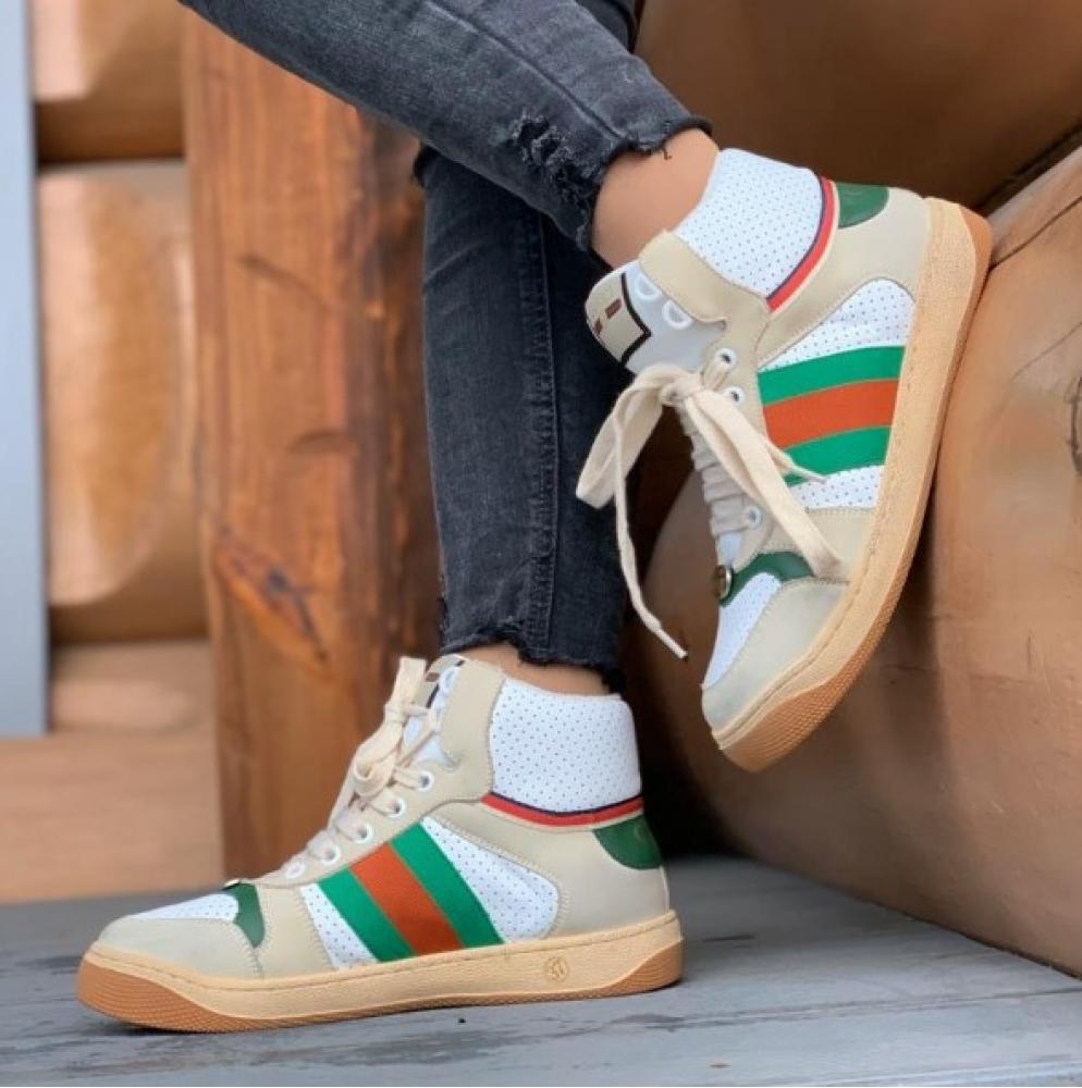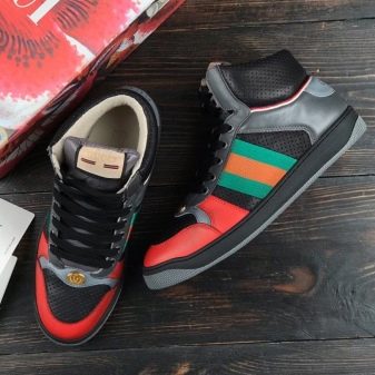 - Gucci. İtalyan moda evi, müşterileri ilk görüşte aşık olmamak imkansız olan yüksek kaliteli ve modaya uygun şeylerle memnun ediyor. Gucci erkek spor ayakkabıları çeşitli stillerde gelir. Hem düz renklerde hem de renkli çizgili ve markalı logolu daha parlak versiyonlarda mevcuttur. Ürünler pahalıdır ancak inanılmaz kalite ve tasarıma sahiptir.