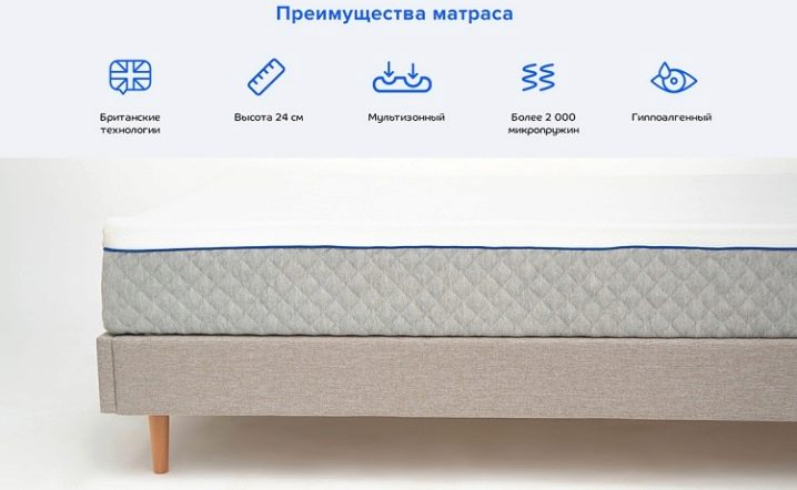 Hybrid markasının yatağının yüksekliği, birçok modern ve klasik yatak için ideal olan 25 cm'dir. Bu Blue Sleep modelinin üst tabakası hipoalerjenik streç kumaştan oluşmaktadır. Vücudun yatay pozisyonuna mükemmel uyum sağlar ve alerjik reaksiyonlar dahil ciltte tahrişe neden olmaz. Dokunsal malzeme çok yumuşak ve hoş. Bu şilte, hafıza etkisi olan bir katmana sahiptir. Bu, üreticilerin özel bir gelişimidir.