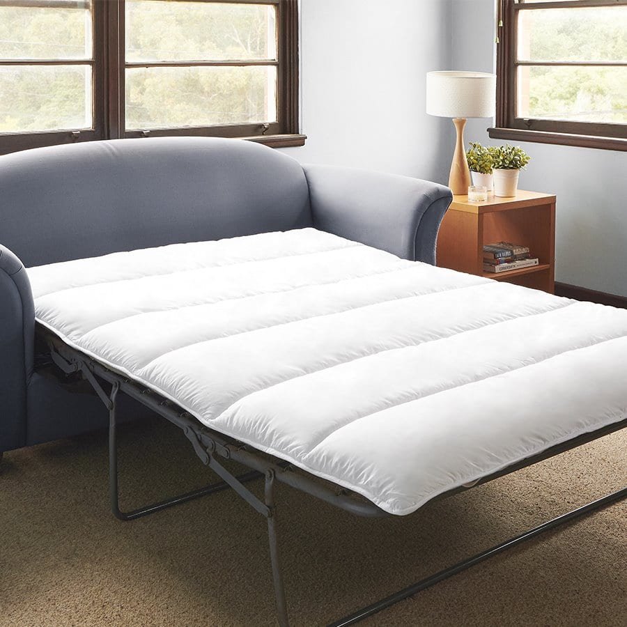 Uyuma yeri güncellemesi. Halihazırda kullanımda olan, ancak yine de bir daralma gerektirmeyen kanepeler, genellikle dolgunun deformasyon izlerine, düzensizliklere sahiptir. Döşemenin üzerine serilmiş ince bir şilte, uyku sırasındaki rahatsızlığı gidermeye yardımcı olacaktır.