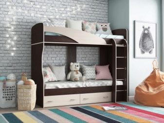 - Çocuklar için çatı katı yatağı - bu tür modeller genellikle çocuğu düşmekten koruyan özel bir çubukla donatılmıştır. Böyle bir çubuk, yatak seviyesinin en az 15-20 cm üzerine çıkmalıdır.