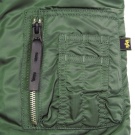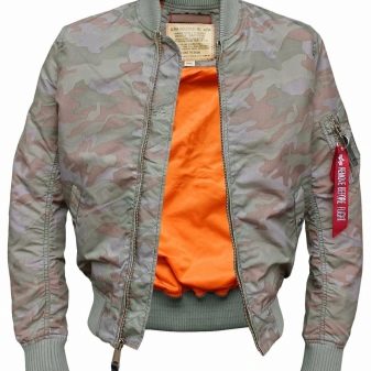 - MA-1. Yarı sezon uçuş bombacısı.XX yüzyılın 70'lerinin ruhundaki şık naylon ceket standart bir kesime sahiptir ve -5 santigrat dereceye kadar sıcaklıklara dayanabilir. Bu model çift taraflıdır, dışı astarlı olarak giyilebilir, yaka, kol, kemer kısımlarında elastik örgü lastik kullanılmıştır.