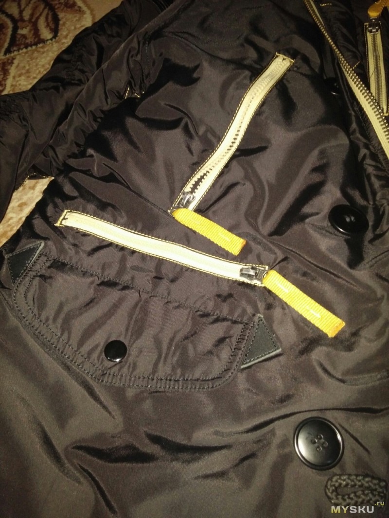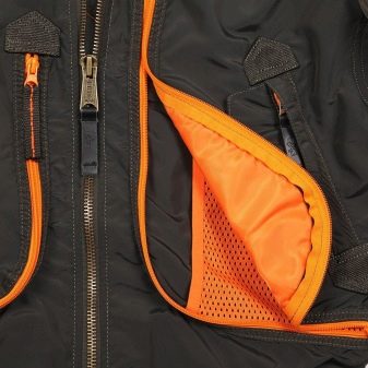 - Yüksek kaliteli terzilik. Çizgiler düz olmalı, dikiş adımı aynı olmalı, iplikler giysinin rengine uygun olmalıdır. Ek olarak, orijinal Alpha Industries ceketlerinde çizgiler her zaman düz olarak dikilir, yazıtlardaki harfler orijinaline karşılık gelmelidir.