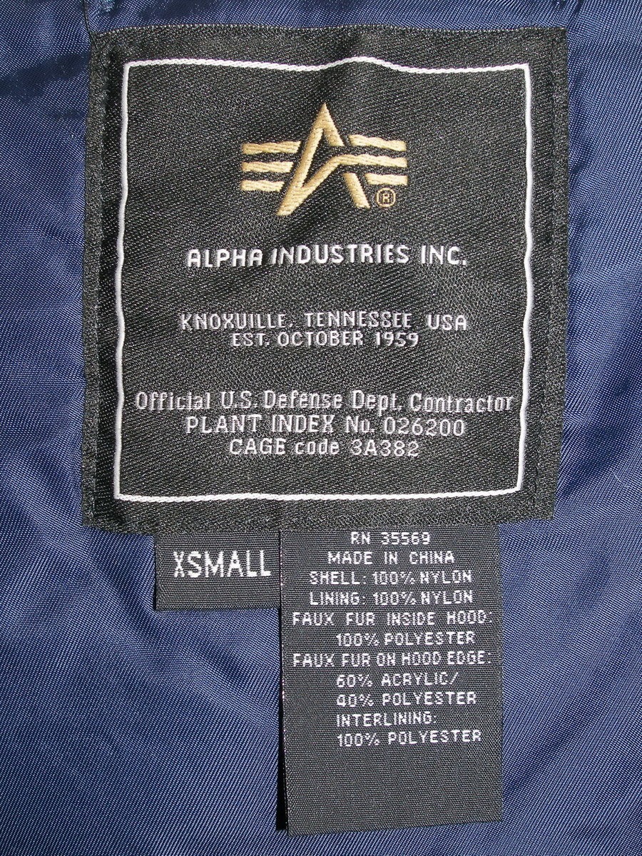 Alpha Industries ceketlerinin ayırt edici özelliklerinden biri de kökenleridir. Bir Amerikan markasının statüsüne rağmen, markanın bombardıman uçakları İtalya'da, geri kalan giysiler ise Çin'de üretiliyor.