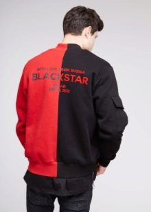 Böyle bir ceket kesinlikle şık, parlak ve çekici görünmek isteyenleri memnun edecektir. Model dikey olarak iki renge ayrılmıştır - siyah ve kırmızı. İki zengin tonun düeti göz ardı edilemez. Black Star Wear koleksiyonundan bir model, siyah kot pantolon veya koyu renk pantolonlarla harika görünüyor.