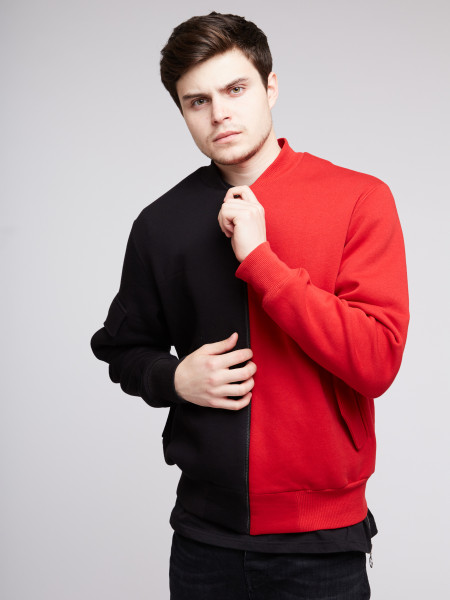 Siyah ve Kırmızı olmak üzere iki renkli bomber sweatshirt