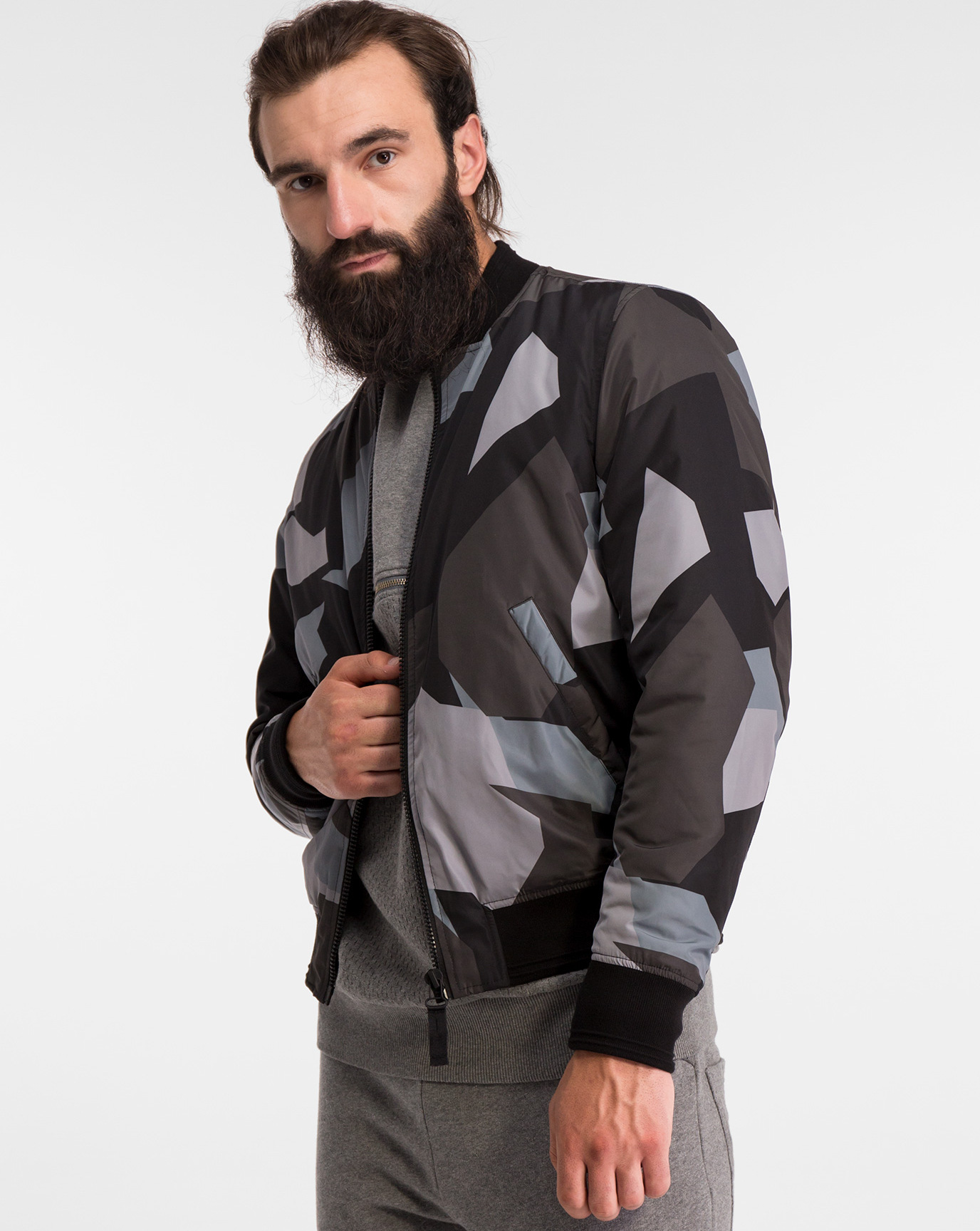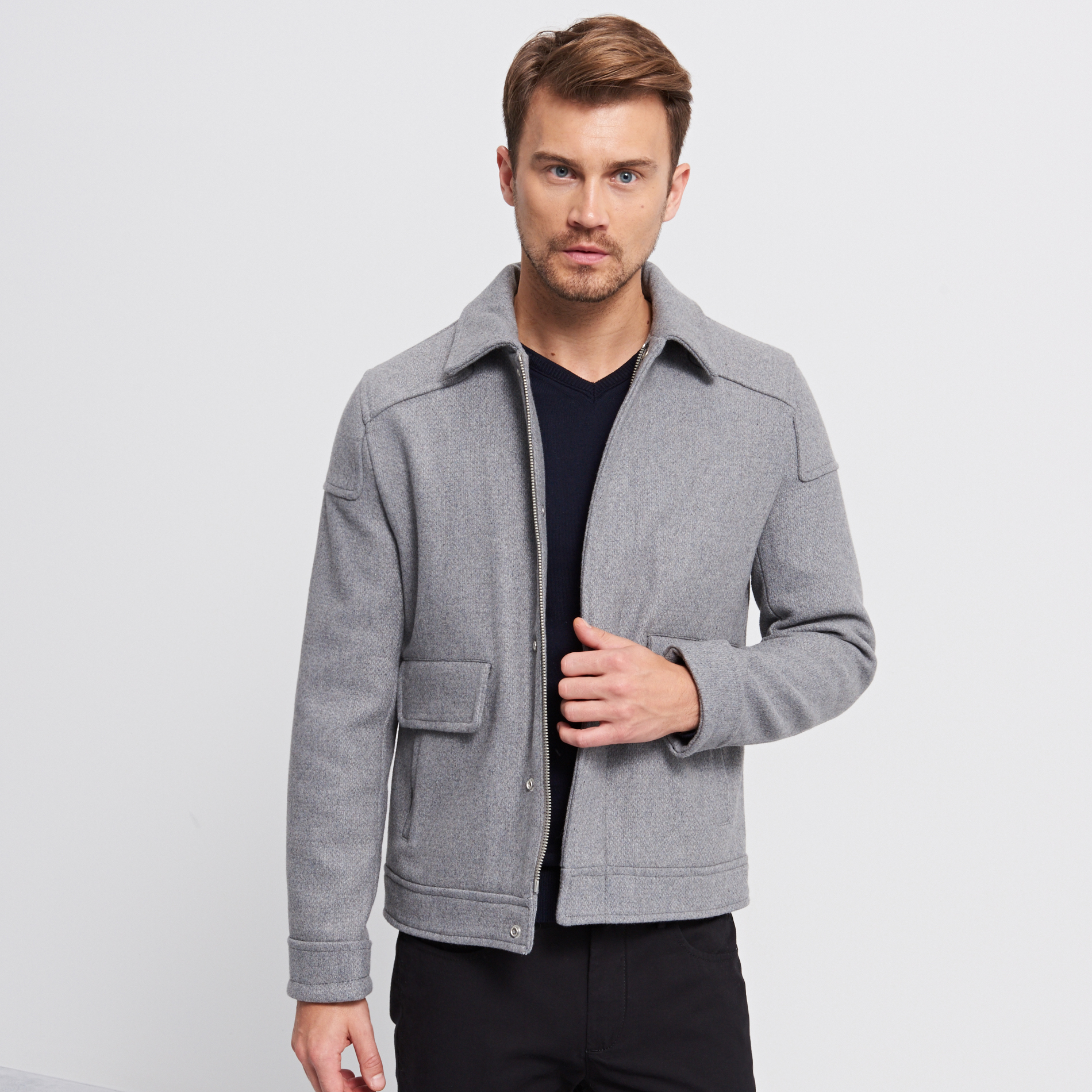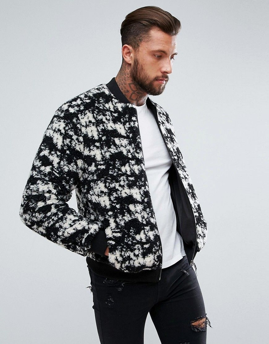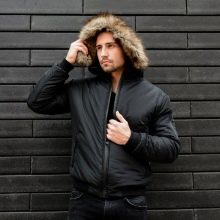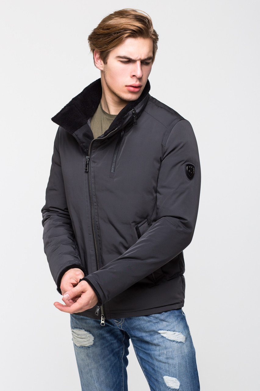 - Koyun derisi yakalı erkekler için yün ceket. Model bomber ceket şeklinde olup, beli spor lastik ve fermuar ile tamamlanmıştır. Modaya uygun gri renk ve şemsiye baskısı, gündelik görünümle iyi gider.
