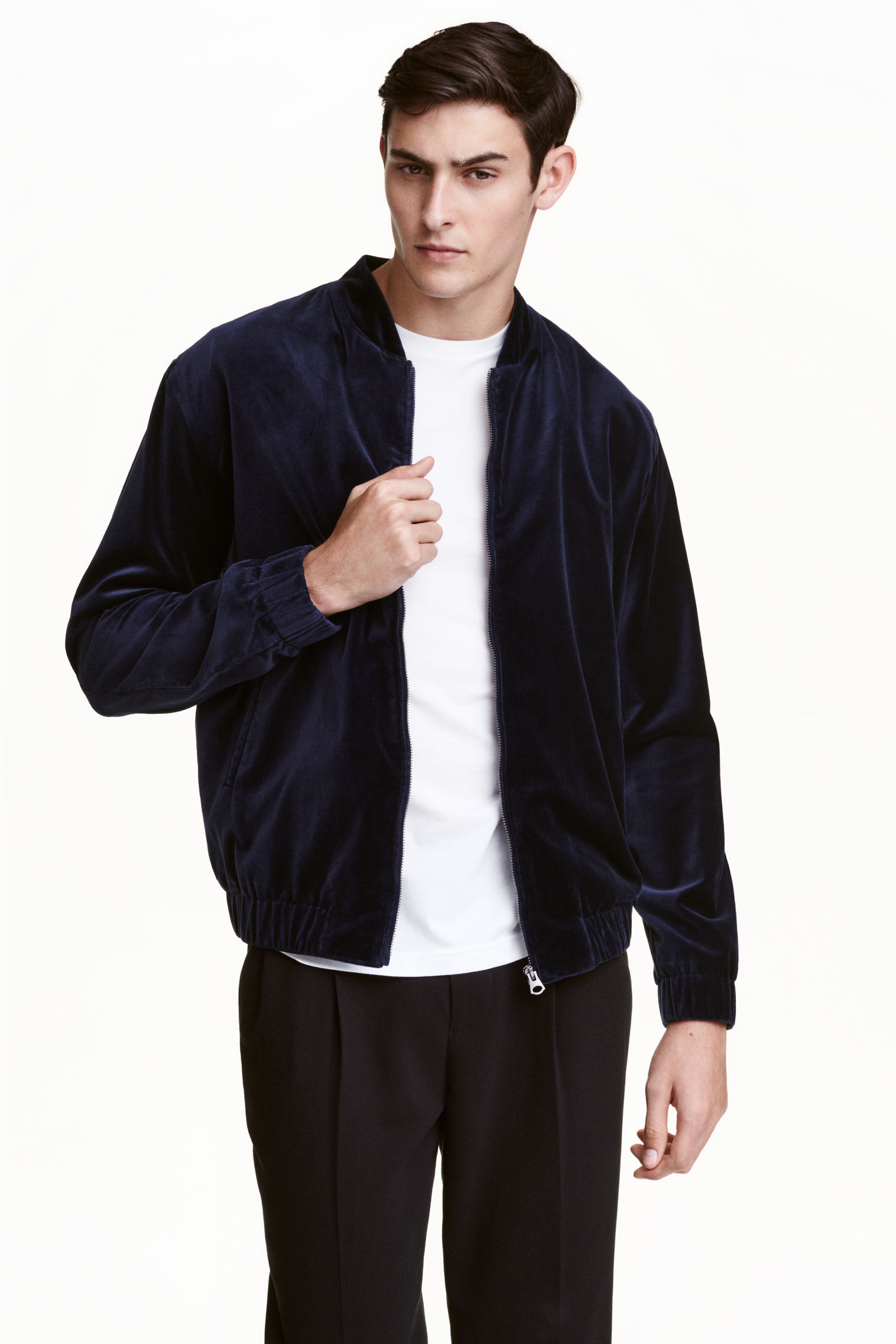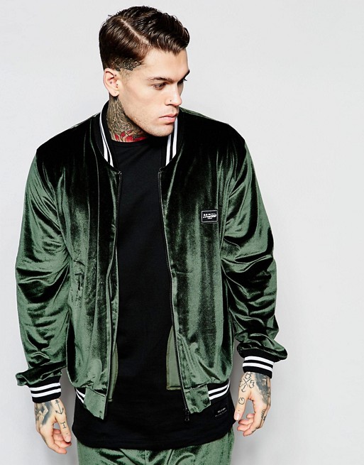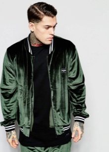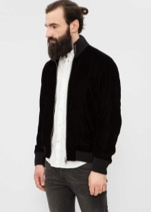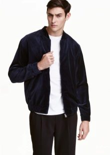 - Kadife. Kısa bir şekerleme ile şık ve modaya uygun kadife, spor-şık bir tarzda bir erkek gardırop için mükemmel bir çözümdür. Bu tasarımdaki bir bomber ceket tamamen yeni bir vizyon kazanıyor. Sadece renkle tahmin etmek önemlidir: trend şarap, koyu mavi, çikolatadır.
