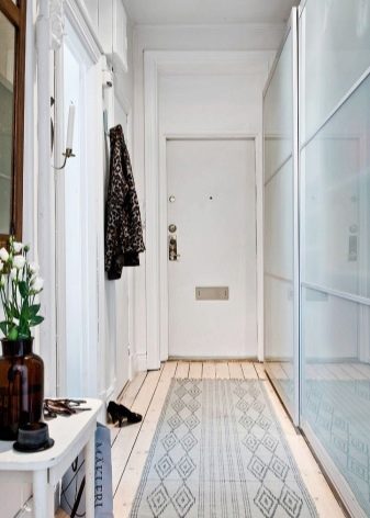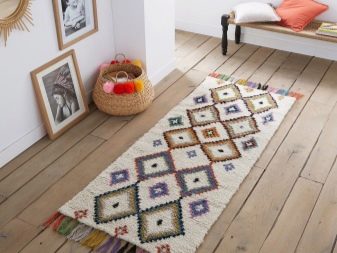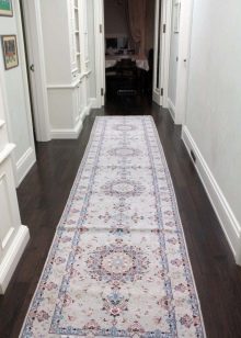 Koridorun zemininde büyük bir halı kullanmak mantıksızdır. Geçitlerde yol döşemek çok daha pratik. Ayrıca, halı çeşitleri, onları herhangi bir iç mekanda dekoratif bir vurgu yapmanıza, bir odanın görünümünü değiştirmenize ve alanın bir kısmını bölmenize olanak tanır.