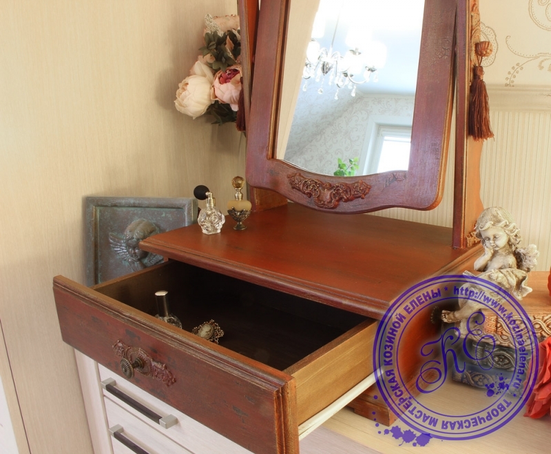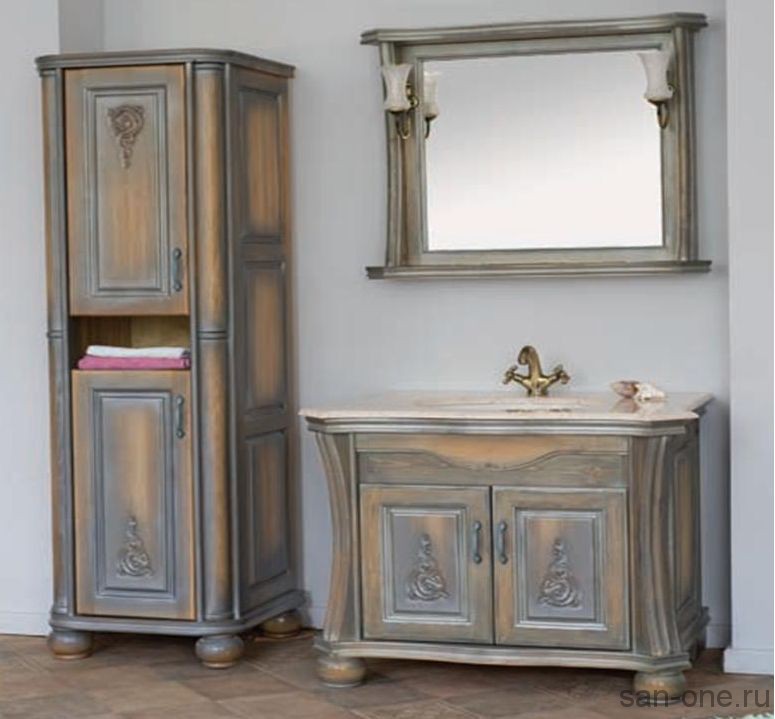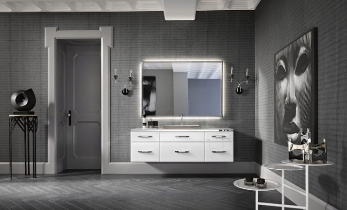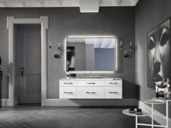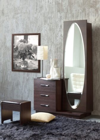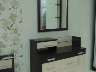 Dikkate alınan çeşitlilik, aynanın duvara ayrı bir kurulumunu içerir. Çoğu zaman, eksiksiz mobilya parçaları, organik algılarını garanti eden aynı tarzda yapılır. İstisnalar, aynanın ve kabinin dış performansı için farklı seçenekler seçmenin haklı olduğu durumlardır - iç tasarımla en iyi kombinasyon için.