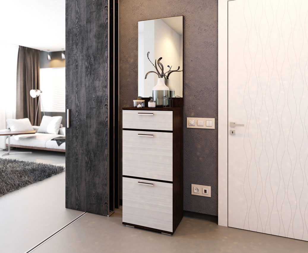 - Odanın şekline ve alanına uygunluk. Bu an, özellikle boş alan eksikliği yaşayan koridorlar için geçerlidir. Bu tür odalar, aynalı kompakt dolaplar için en uygundur - örneğin dar veya köşeli olanlar.