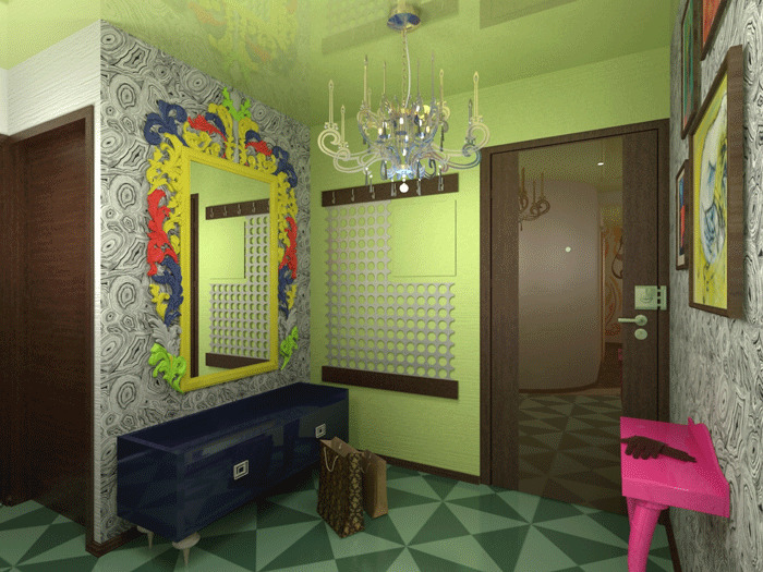 - Pop sanat. Parlak yüzeyler ve parlak renklerin organik kombinasyonu. Önerilen malzemeler MDF, cam ve plastiktir.