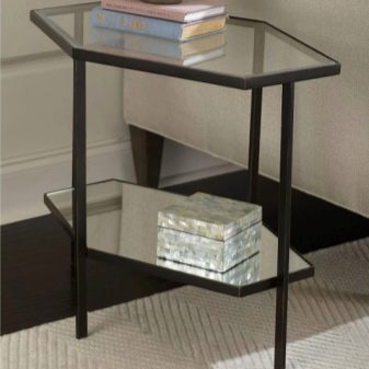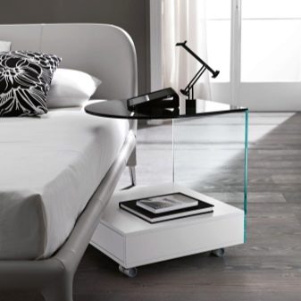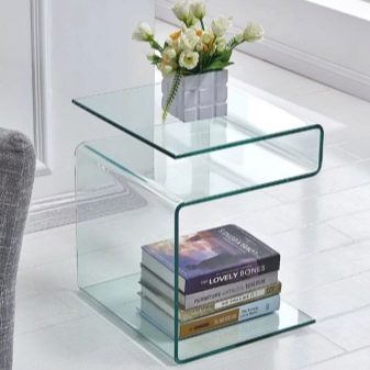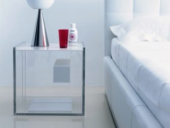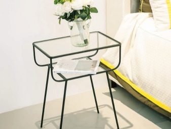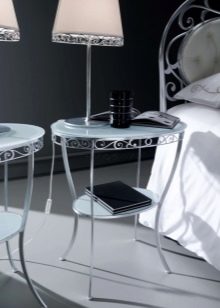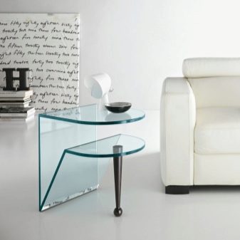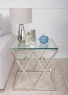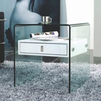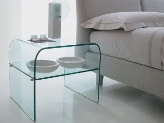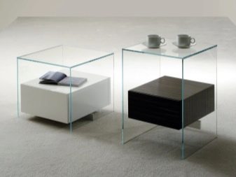 Ayrıca sadece dış dekorasyon elemanları cam olabilir. Yatak odaları veya oturma odaları için komodin cam masalar, iç mekanın bağımsız unsurları veya bir mobilya setinin parçası olabilir.