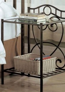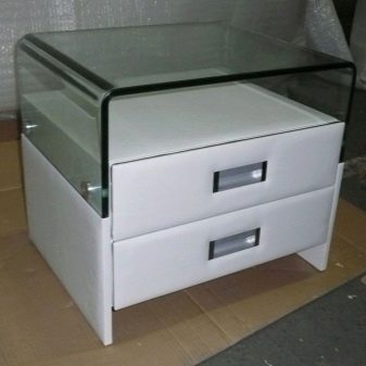 Tasarım gereği, cam komodinler ahşap veya metal bir çerçeveye monte edilebilir. Diğer modifikasyonlar normal çerçeve çerçevesine sahip değildir.