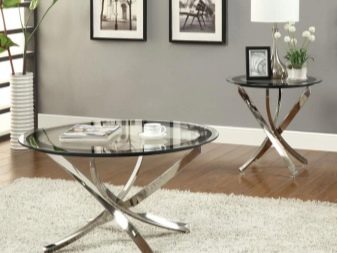 Modern tarzda özlü seçenekler bazen hem basit hem de benzersizdir. Örneğin, klasik oval şekilli cam masa tablasından ve krom kaplı çelikten çeşitli metal boru desteklerinden oluşabilirler.