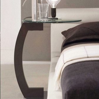 Bir yatak odası veya oturma odası için muhteşem bir cam masa satın alırken, dikkate alınması gereken birkaç nüans vardır. Önemli olan ürünün yüksekliğidir. İdeal olarak, şilte dikkate alınarak yatağın yüksekliğini geçmemelidir. Düşük bir model kullanmak elverişsizdir, çok yüksek yatağın arka planına çarpacaktır.