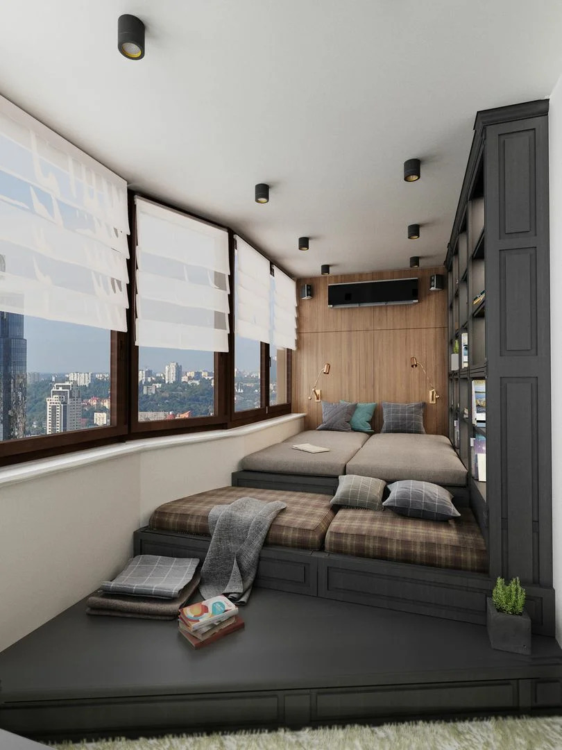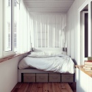 Yatak odasını sundurmaya yerleştirmek de mümkün olacaktır. Kural olarak, yerleşik bir yatak, genişletilmiş pencere pervazının komodin görevi görecek şekilde yerleştirilir. Gerekirse alan boşaltmanıza izin veren katlanır bir tasarım da uygundur. Camlı sundurmayı bir çocuk oyun odasına veya bir genç için bir odaya dönüştürebilirsiniz. Kompakt mobilyalar seçerek, küçük bir alana sandalyeli bir masa, küçük bir kanepe ve bir depolama rafı yerleştirmek oldukça mümkündür. Balkon bir giyinme odasına dönüştürülürse, üzerine düşük ağırlığı ile dikkat çeken gömme bir gardırop takılır.