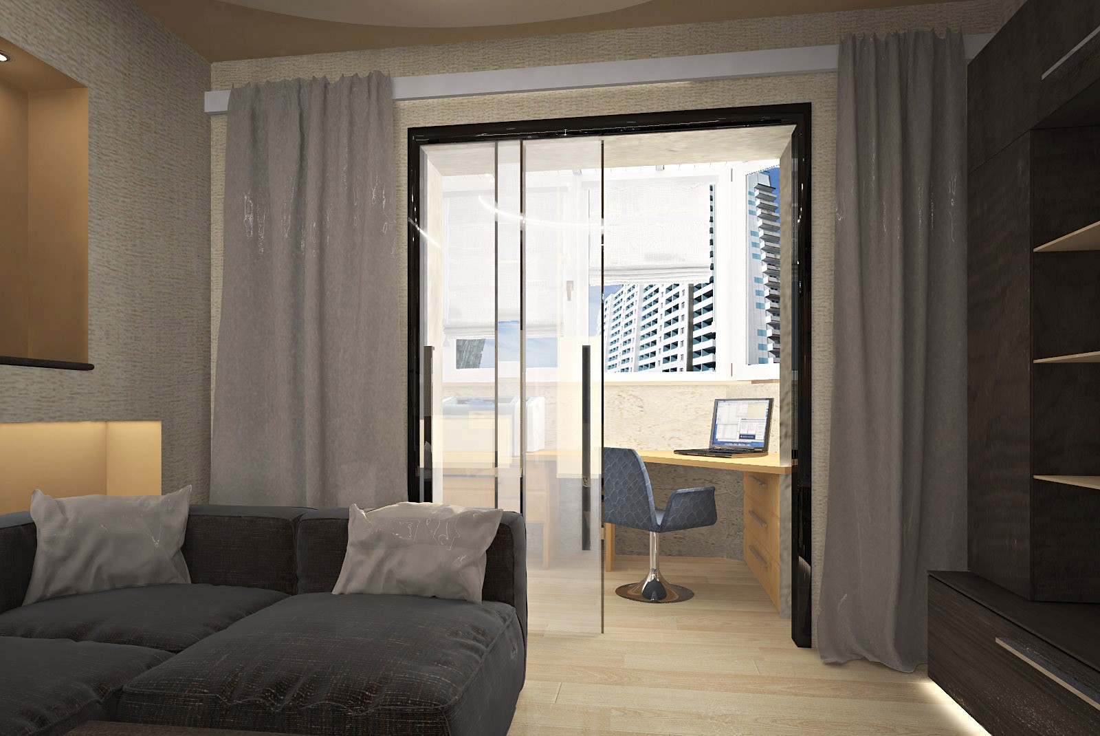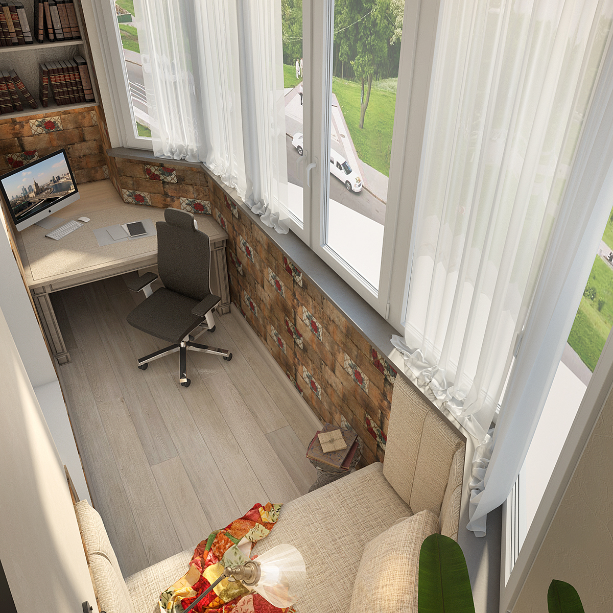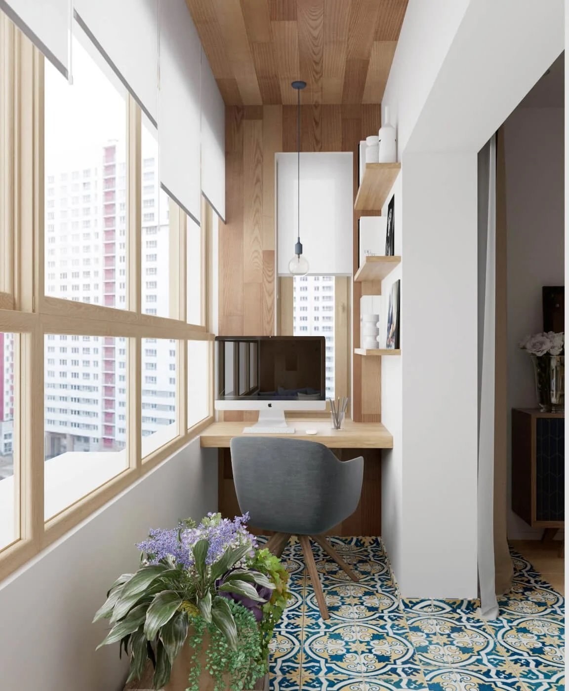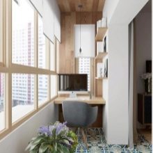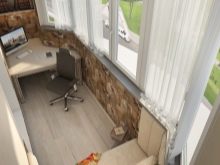Yalıtımlı balkon zaten bitirmeye değer... Parke veya daha ucuz alternatifler genellikle yerden ısıtma üzerine serilir. Mutfağı bitirmek için plastik ve seramik kullanılır. Yatak odasına, ideal olarak açık tonlarda, kumaş veya sıvı duvar kağıdının yanı sıra mantar veya bambu paneller yerleştirebilirsiniz.