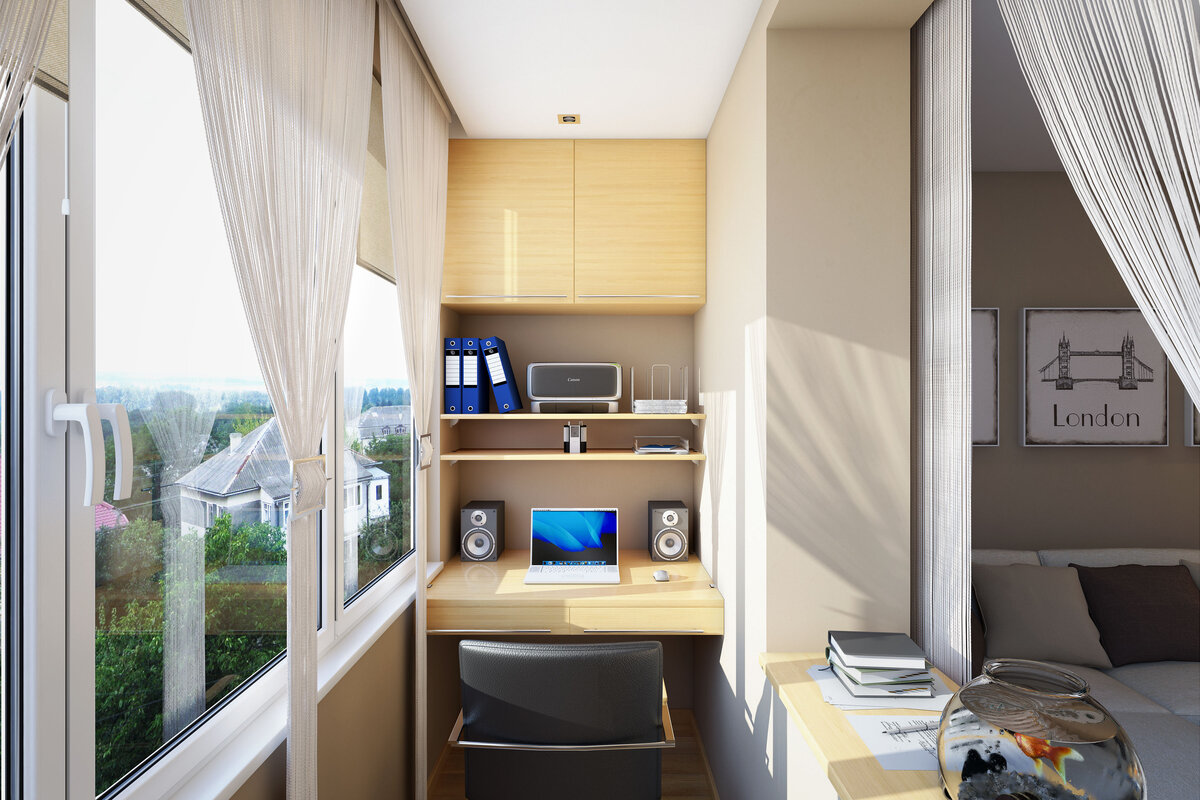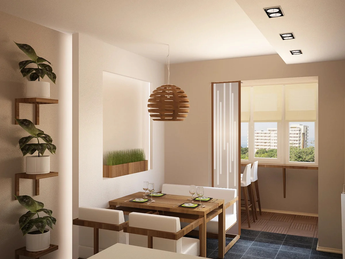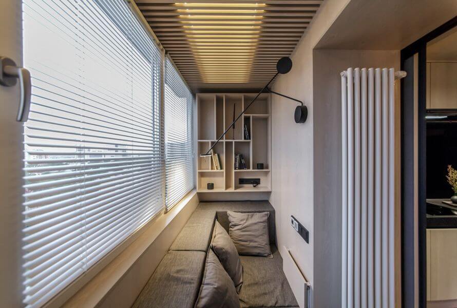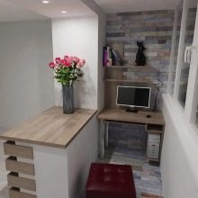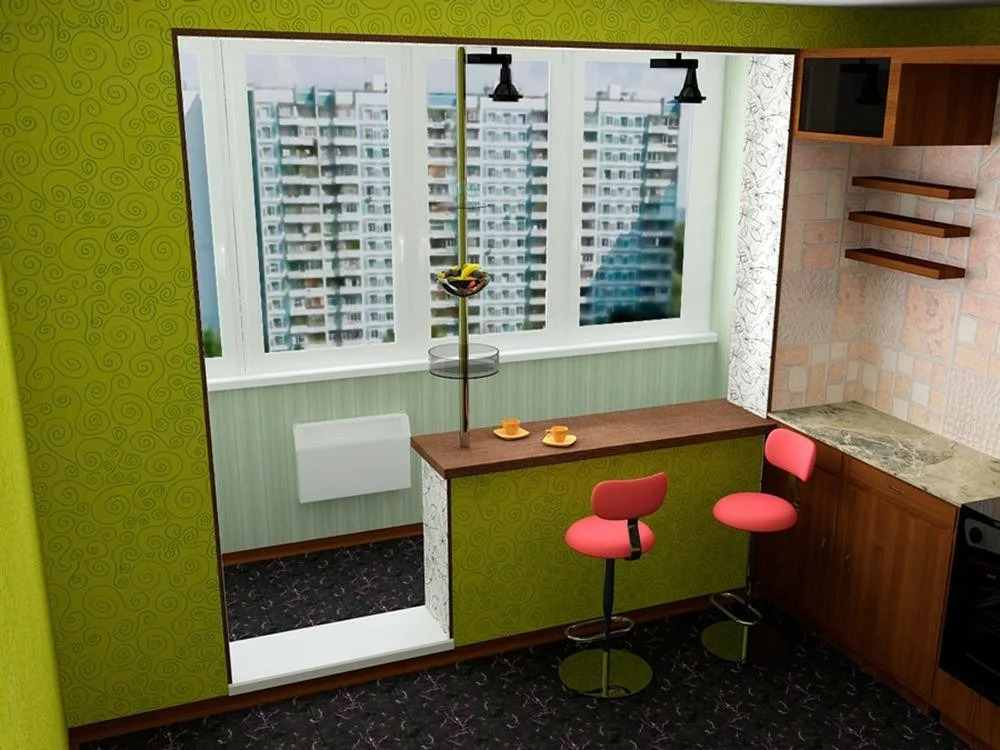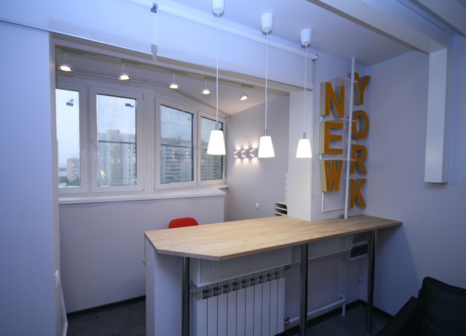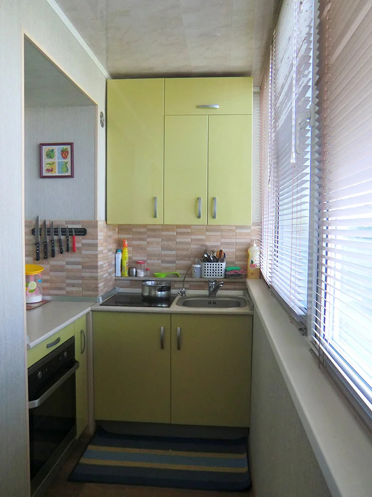 Küçük bir alan, bir mutfak veya yemek alanı barındırabilir. Tabii ki, balkona gazlı aletleri takmak işe yaramayacak, bu yüzden bir elektrikçi satın almanız gerekecek, ve önce kablolama planını, anahtarların ve prizlerin yerini dikkatlice düşünün. Havalandırma sistemi ile donatılmış çift camlı pencereleri seçmek daha iyidir. Alanın en verimli kullanımı için yerleşik mobilya almak daha iyidir.