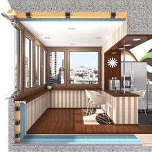 Loggia ayrı bir odaya dönüştürülürse, o zaman sadece pencereleri değil, aynı zamanda çıkışını da perdahlamanız gerekecek. Çalışma şu sırayla gerçekleştirilir: önce köpük, mastik ve özel şeritler yardımıyla tüm delikler üflemeyi önlemek için kapatılır, ardından su yalıtımı ve buhar bariyeri yapılır ve son olarak pencereler camlanır. Kural olarak, bu amaçla, sıcaklık ve nem seviyelerindeki ani değişikliklerle başa çıkmak için özel çift camlı pencereler kullanılır. Daire ne kadar yüksekse, cam o kadar kalın olmalıdır.