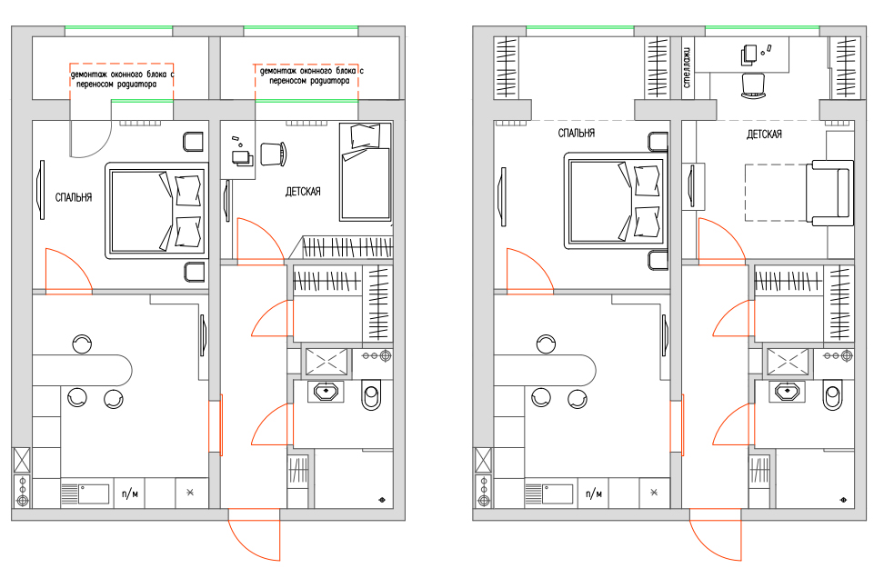 Genellikle, yeniden geliştirme, bir oda ve bir sundurmanın tek bir alanda birleştirilmesi anlamına gelir; bu, pencerenin ve kapının yeniden düzenlenmesini ve ayrıca alanın ayrı bir odaya tahsis edilmesini gerektirir.... Pencere ünitesi kaydedilebilir ve bir bilgisayar masası veya rafına dönüştürülebilir veya örneğin cam kapılarla tamamen değiştirilebilir.