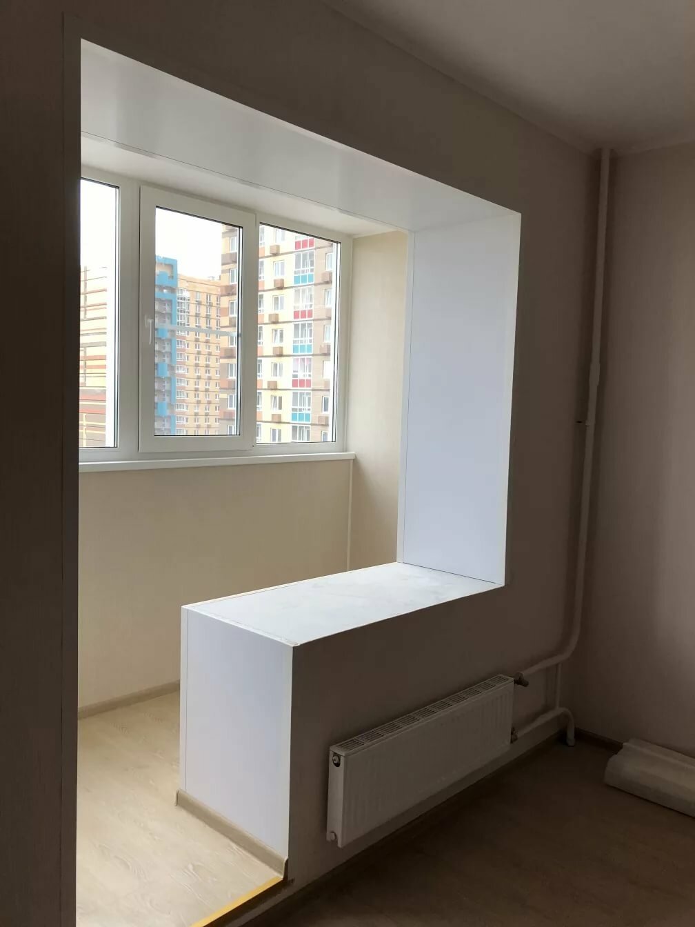 Pencere boyunca gerçekleştirildiğinde, yalnızca kapalı yapının boyutları artar. Bu durumda, balkon alanı değişmeden kalır. Böyle bir projenin daha ekonomik olduğu, ancak etkili olmadığı ortaya çıktı. Aslında, geniş pencere pervazları, yeni bir çerçevenin kurulmasının bile gerekli olmadığı eski sundurmaya basitçe bağlanır.