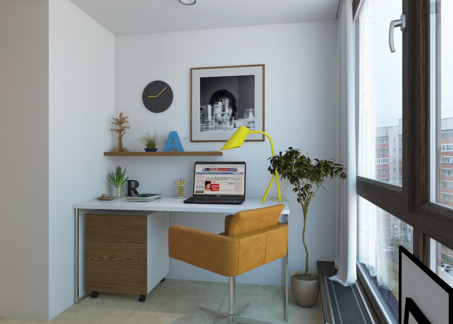 Ofiste masa lambası, belgeler için düzenleyiciler ve ofis malzemeleri olmadan yapamazsınız. Yatak odasında yumuşak bir aydınlatma oluşturmak için duvarlara bir çift aplik takmalısınız. Pencere pervazına ev bitkileri yapılabilir ve duvarlar resim veya posterlerle süslenebilir.