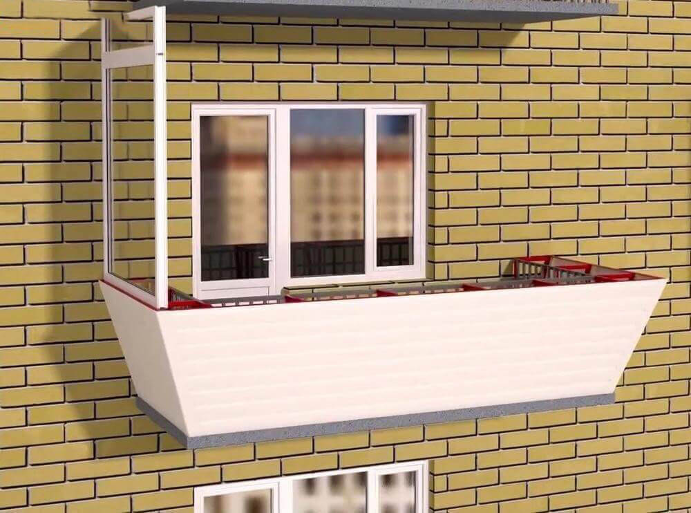 Zemin boyunca kaldırma, taban plakasında bir artış anlamına gelir, bu da balkonun alanını ve hacmini arttırır. Sonuç olarak, yaşam alanı maksimize edilir. Bu tür bir genişleme ile, eski cam ve korkulukların sökülmesi ve ayrıca yeni bir metal çerçevenin toplanması da dahil olmak üzere balkonun ciddi bir şekilde yeniden inşa edilmesi gerekmektedir. Çalışma sırasında profilli borular eski temele ve binanın cephesine sabitlenir. Ayrıca, pencere pervazının seviyesine yalıtım plakalarının montajı ve cam görünümü gerçekleşir. Bitmiş yapı bir sundurma vizörü ile kaplanmıştır ve dış tarafı profilli bir levha ile yapılmıştır.