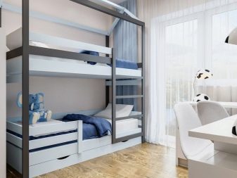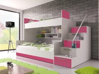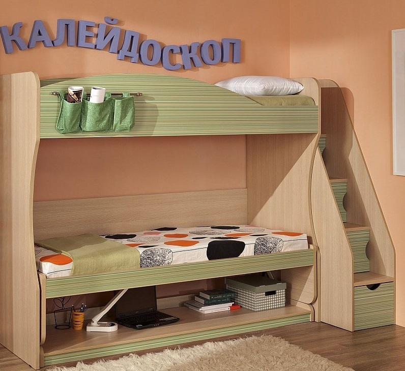 Birçok ranza, ek saklama dolapları ile donatılmıştır. Ailede sadece bir çocuk olsa bile böyle bir yatak uygundur.