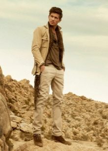 Bu tarzın ana renkleri: haki, kahverengi, fıstık, bej, fildişi. Bu tarz için süetten yapılmış giysiler uygundur. Görüntü, bir adamı macera avcısı yapacak bir şapka ile desteklenebilir. Bu arada görüntünün bazı detaylarında daha iyi kullanılan leopar deseni tekrar moda oldu. Ana şey aşırıya kaçmamaktır.