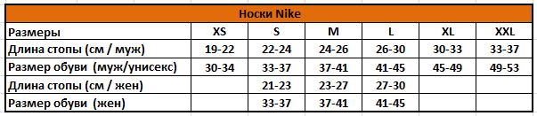 Nike çorap ölçüleri için lütfen tabloya bakınız. Ayakkabı numarasına veya santimetre cinsinden ayak uzunluğuna göre çıkarım yapılabilir. Örneğin, 41'den 45'e kadar olan Rus botlarının sahipleri, L ile çorap satın almalıdır. Ayağın uzunluğuna gelince, bu durumda 26-30 cm olacaktır.