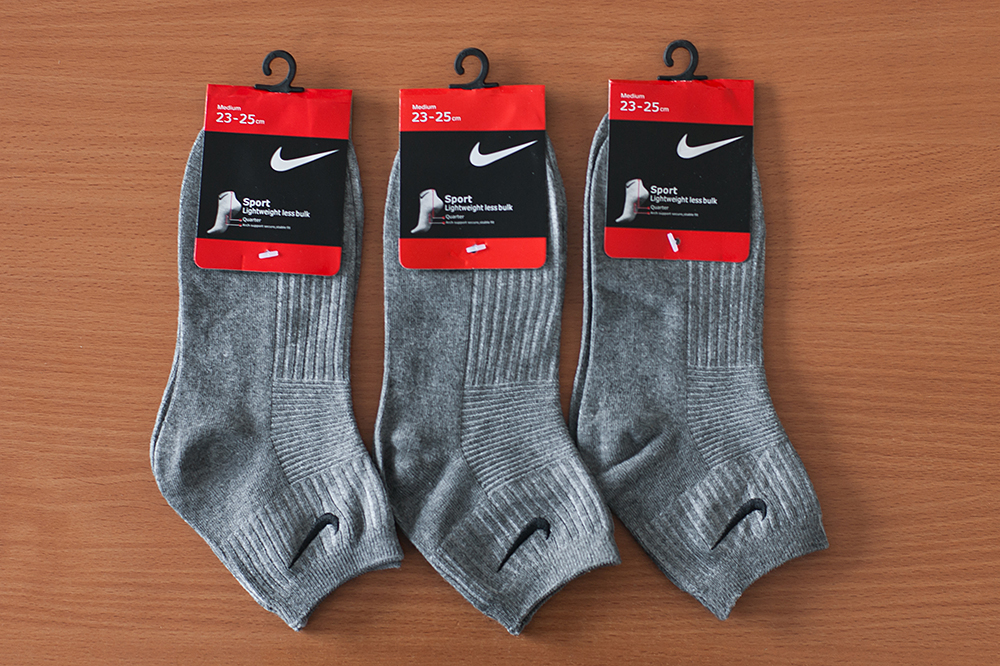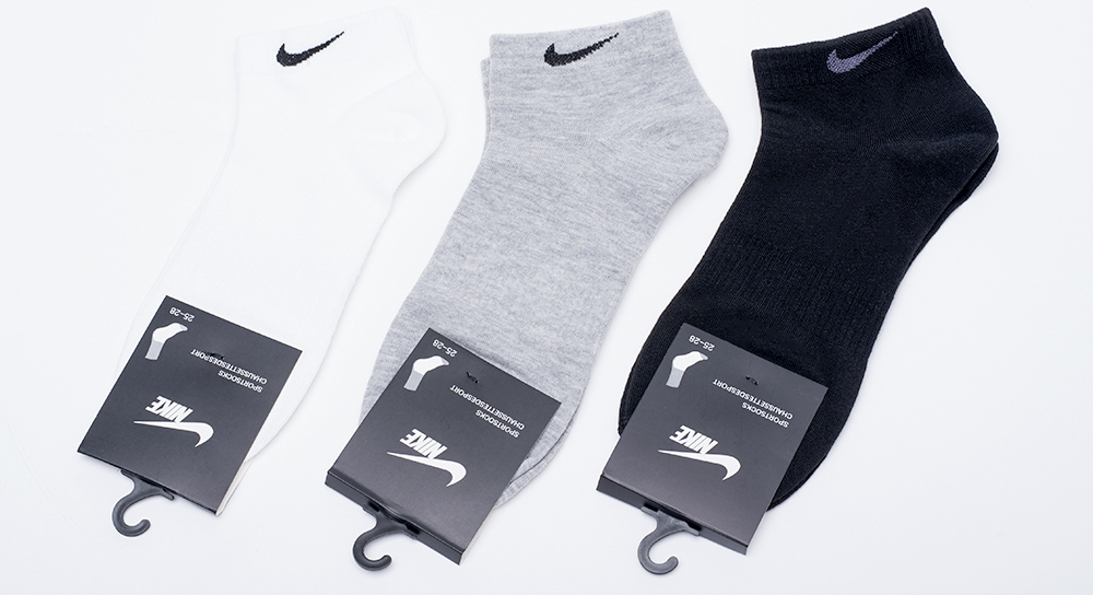 Antrenman, koşu, futbol, basketbol, tenis için özel çorapların yanı sıra günlük hayatta giyilebilecek çok yönlü modelleri yoğun ve hafif (file dahil) kumaştan üretmektedir. Uzunluğa gelince, Nike müşterilerine 5 seçenek sunar: çoraplar, kısa çoraplar, ayak bileğine, alt bacağın ortasına ve dizine kadar.