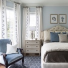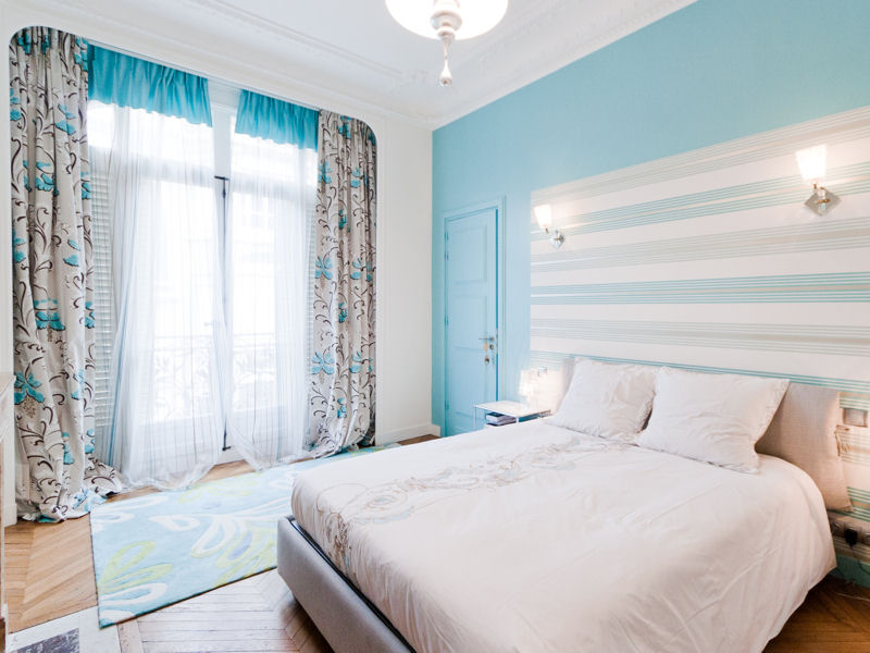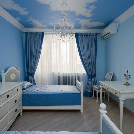 Derin mavi renk, tasarımı daha etkileyici ve renkli hale getirecektir. Mavi bir yatak odasında mavi perdeler ve diğer tekstil unsurları uygun görünecek.
