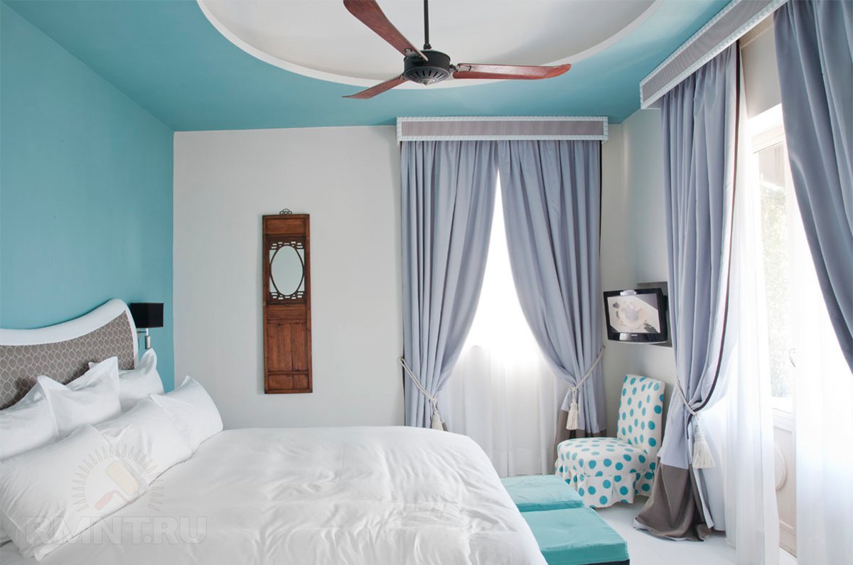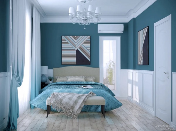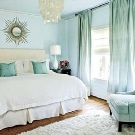 Mavi bir yatak odası için turkuaz perdeler idealdir. Genel dekora oldukça uyumlu bir şekilde uyacaklar. Ayrıca dekoratif elemanlar seçerken bu renk kullanılabilir.