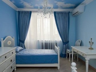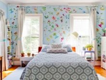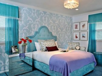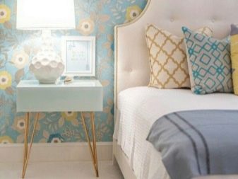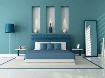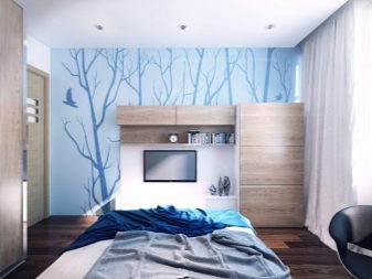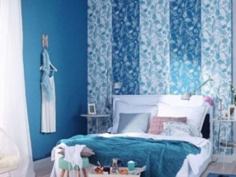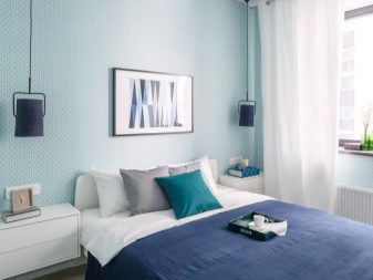 Mavi tonlarda duvar kağıdı, bir yatak odasını dekore etmek için harikadır. Bir aksan veya ana dekorasyon görevi görebilirler. İstenirse, duvarlar düz tuvallerle yapıştırılabilir ve iç kısım benzer tonlarla seyreltilebilir. Böyle bir tasarım seçeneği seçerken, hem olumlu hem de olumsuz özelliklerini dikkate almanız gerekir.