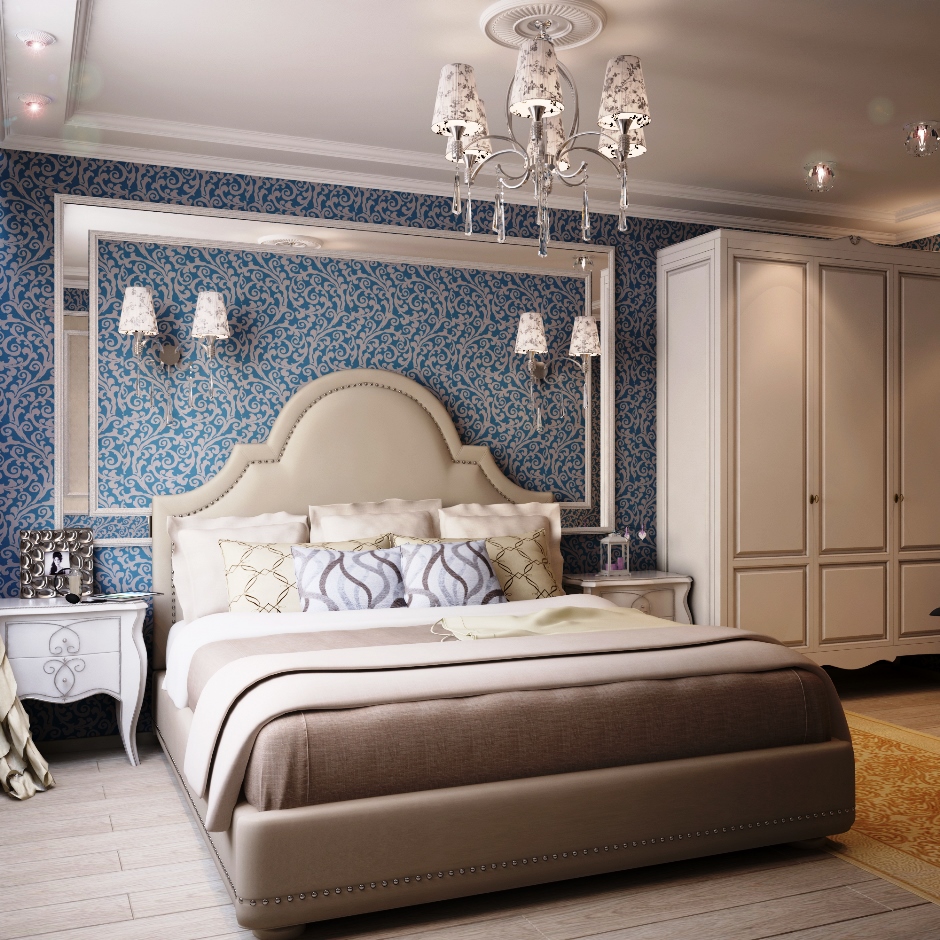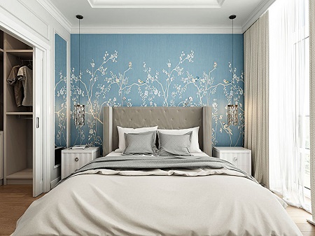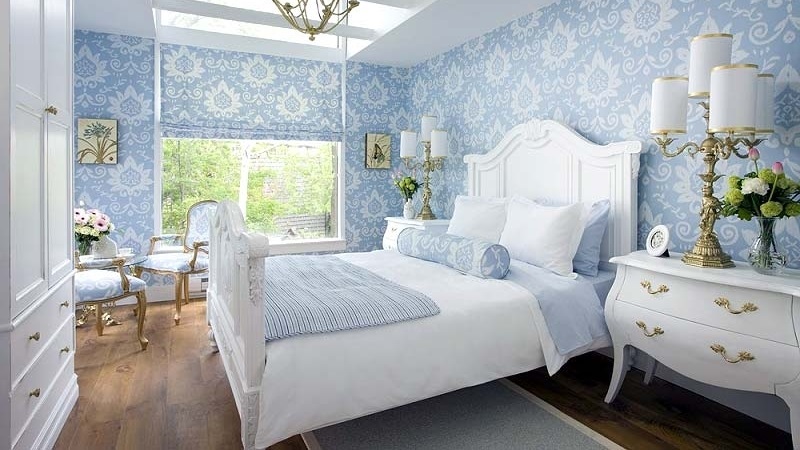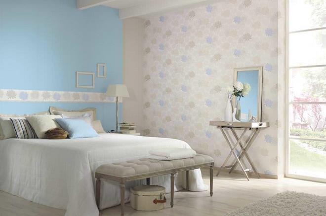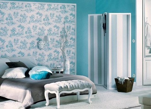 Yatak odasındaki mavi duvar kağıdı değiştirilebilir. Tasarımcılar, doygunluk ve diğer özelliklerde farklılık gösteren tonlarda çok çeşitli duvar kaplama malzemeleri sunar. Zengin renk yelpazesi arasında aşağıdaki seçenekler ayırt edilir: