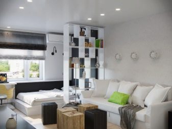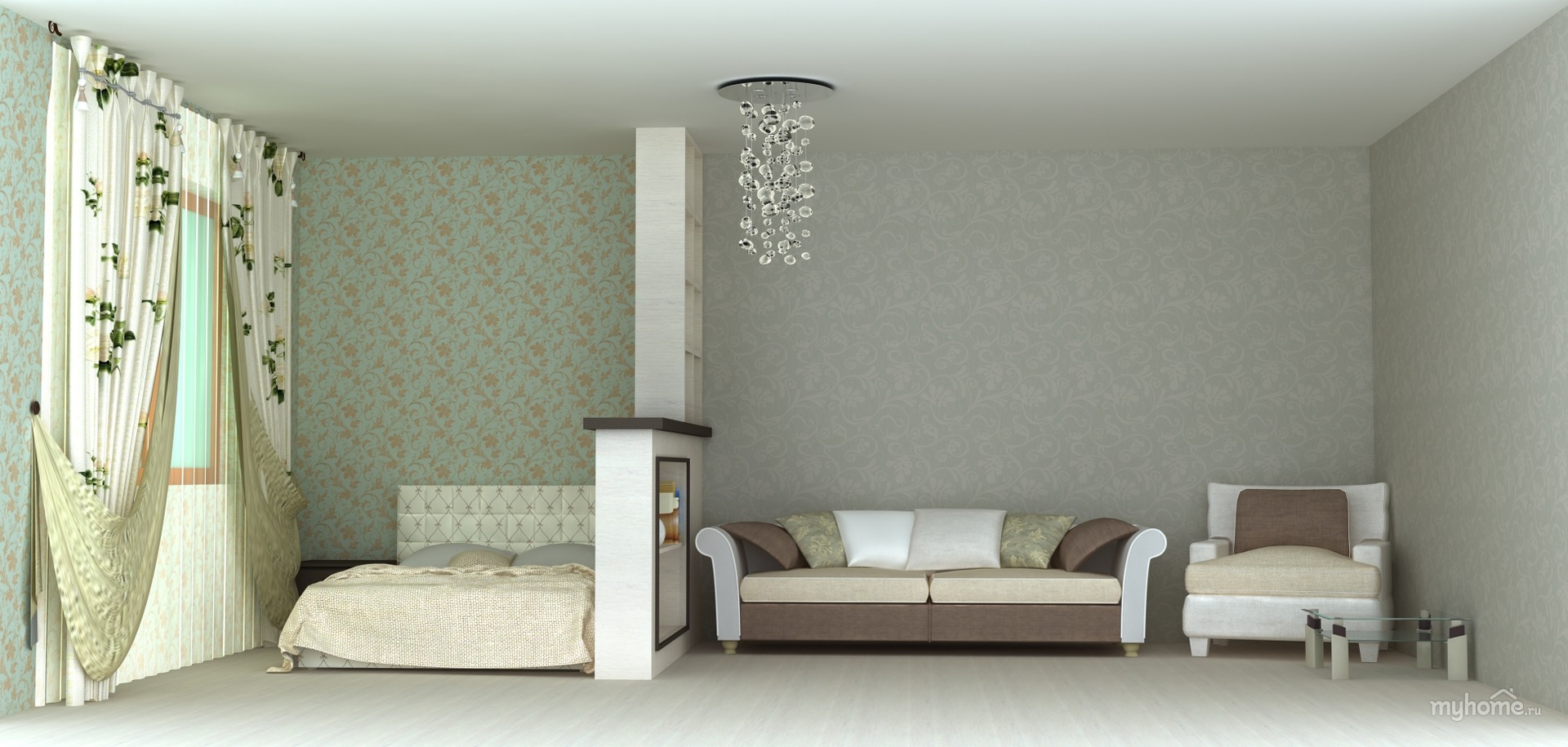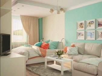 Yatak odası-oturma odası herhangi bir renk düzeninde dekore edilebilir - asıl mesele, tüm dairenin veya tüm evin genel tarzına uymasıdır.