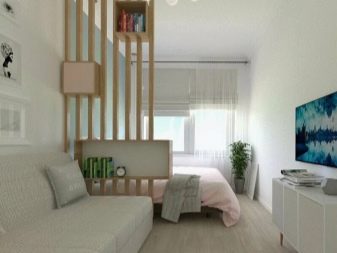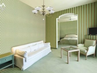 Küçük ve dar odalar için uzmanlar, örneğin süt, krema, şeftali veya gümüş gibi açık duvar kağıdı tonlarını seçmenizi önerir. Düz duvar kağıdı ayrıca uyku alanını oturma odasından ayırabilir, ancak zaten farklı bir gölge veya dokuya sahiptir. Örneğin, soluk mavi, limon veya açık pembe beyazlarla iyi gider - hepsi kişisel tercihe bağlıdır.