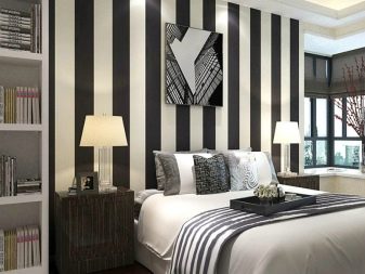 Tasarımcılar, bir duvar için bir dekorasyon olarak çizgili duvar kağıdı kullanmanızı önerir: renge bağlı olarak hem modern hem de klasik iç mekanlar için seçilebilirler.