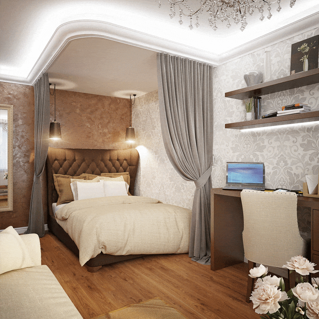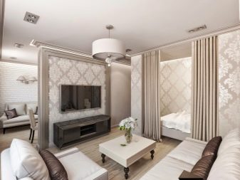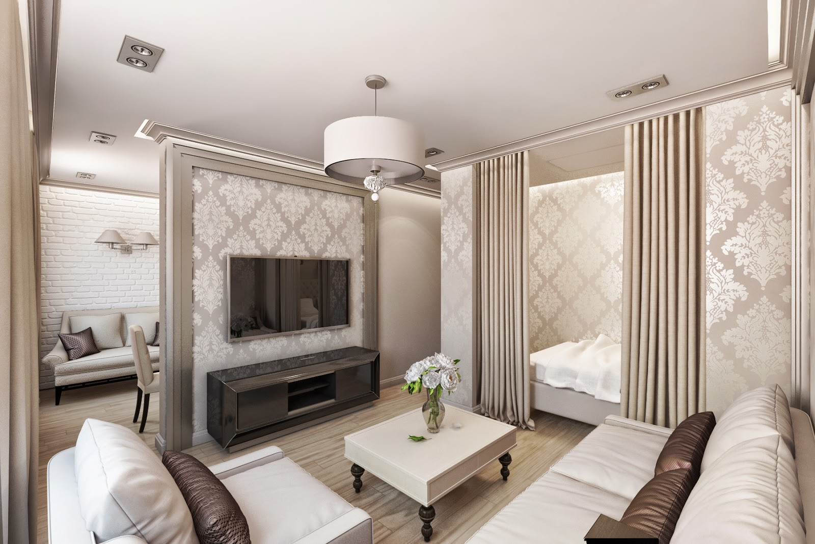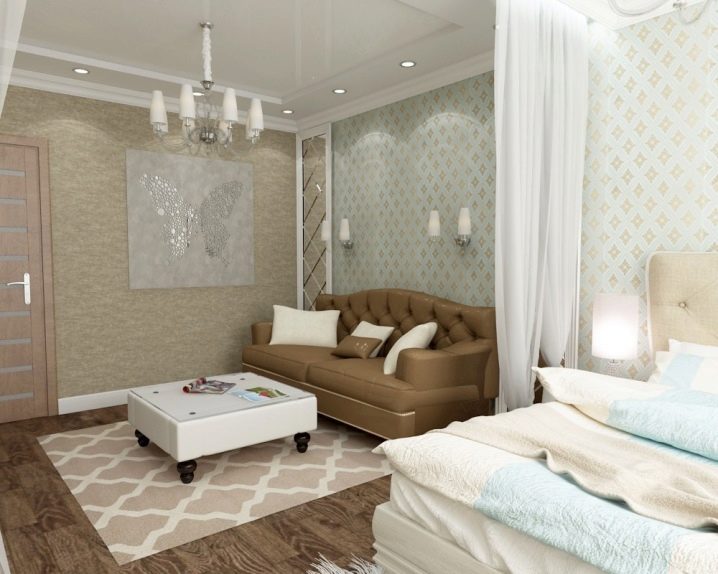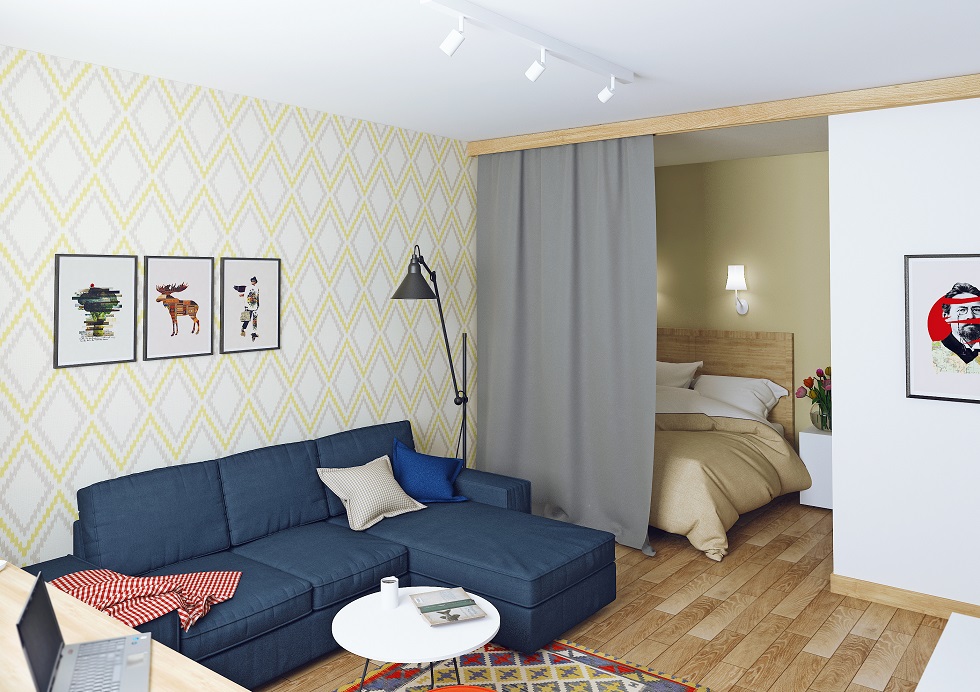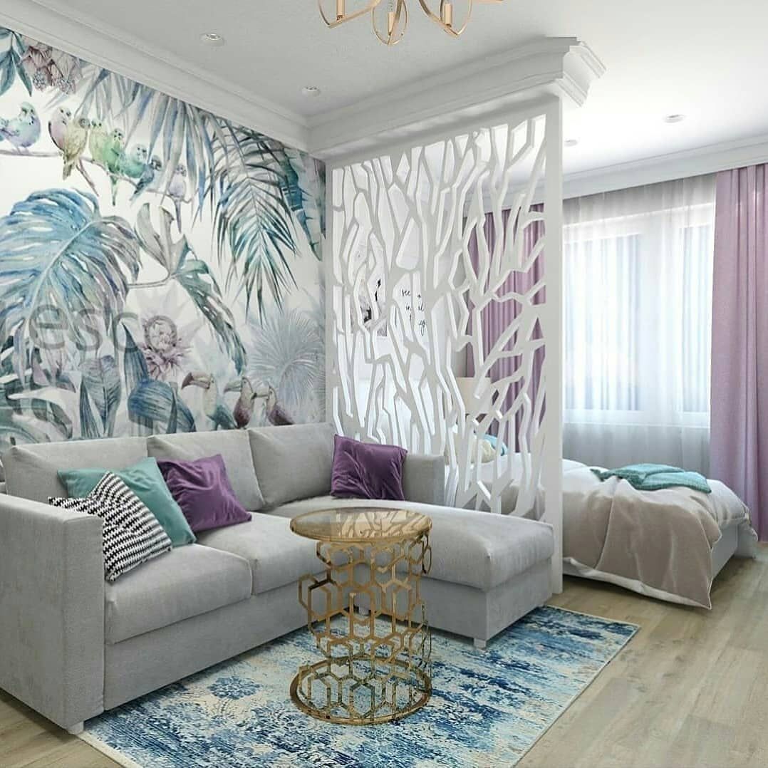 Günümüzde yatak odası ve oturma odasını kendi alanında birleştiren stüdyo daireler giderek daha popüler hale geliyor. Bu odayı başarılı bir şekilde yenmek ve sadece ev üyeleri için değil, misafirler için de rahat hale getirmek için, duvar kağıdının renklerini ve türlerini oturma odası yatak odasında doğru bir şekilde birleştirmek çok önemlidir.