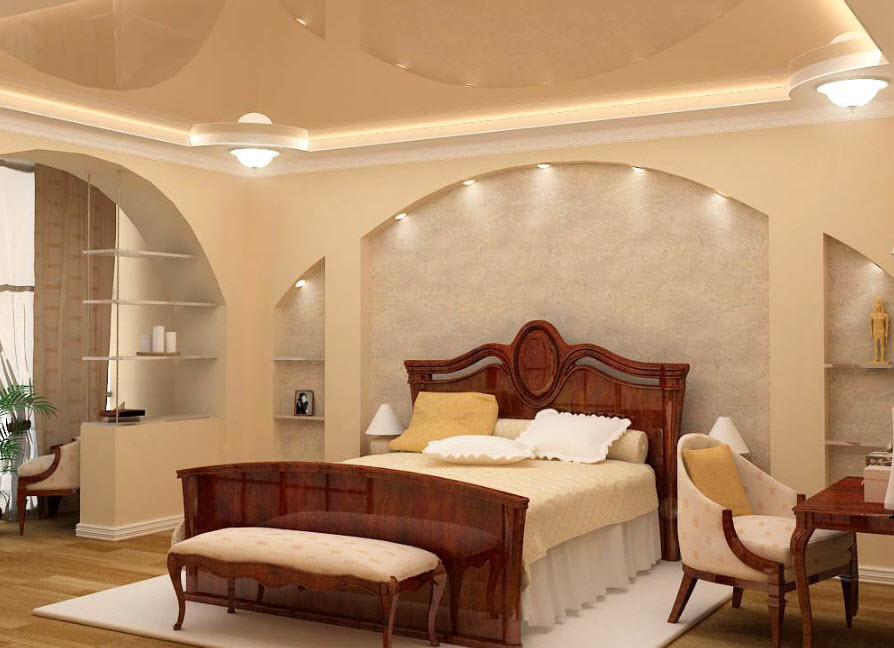 Odadaki köşelerin, nişlerin ve çeşitli kıvrımların varlığı da başarıyla dövülebilir. Yani, odada bu tür öğeler varsa, örneğin, duvar kağıdının farklı bir renginde vurgulanabilirler. Çoğu zaman, uzmanlar oturma odaları için yatak odaları ile birleştirilmiş kahverengi duvar kağıdı seçerler ve yatağın üzerinde bir kemer ve birkaç niş varsa, kahverengi duvar kağıdı ile zıt olarak ışıkla yapıştırılırlar.