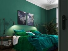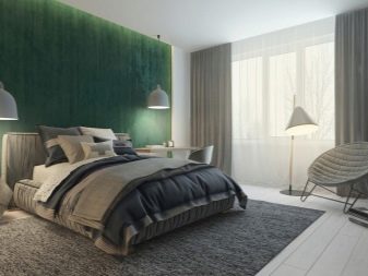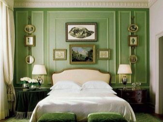 Yatak odasının iç kısmındaki yeşil duvar kağıdı çok iyi bir çözüm olarak kabul edilebilir. İç tasarımda duvarlar için açık yeşil ve açık yeşil duvar kağıdı, koyu yeşil duvar kağıdı ve diğer tonlarda çeşitli seçenekler ile tanışabilirsiniz. Ayrıca yeşil rengin diğer tonlarla birleştirilip birleştirilemeyeceği, belirli bir stile uyması gerektiğini belirtmekte fayda var.