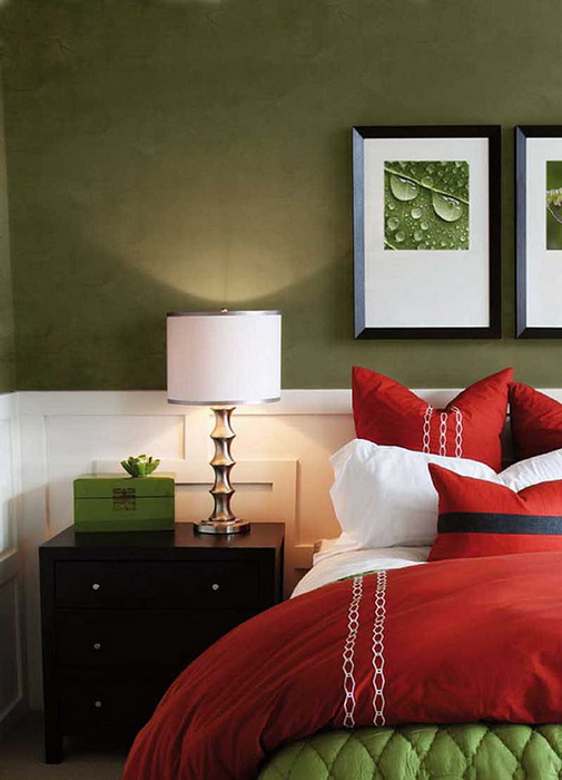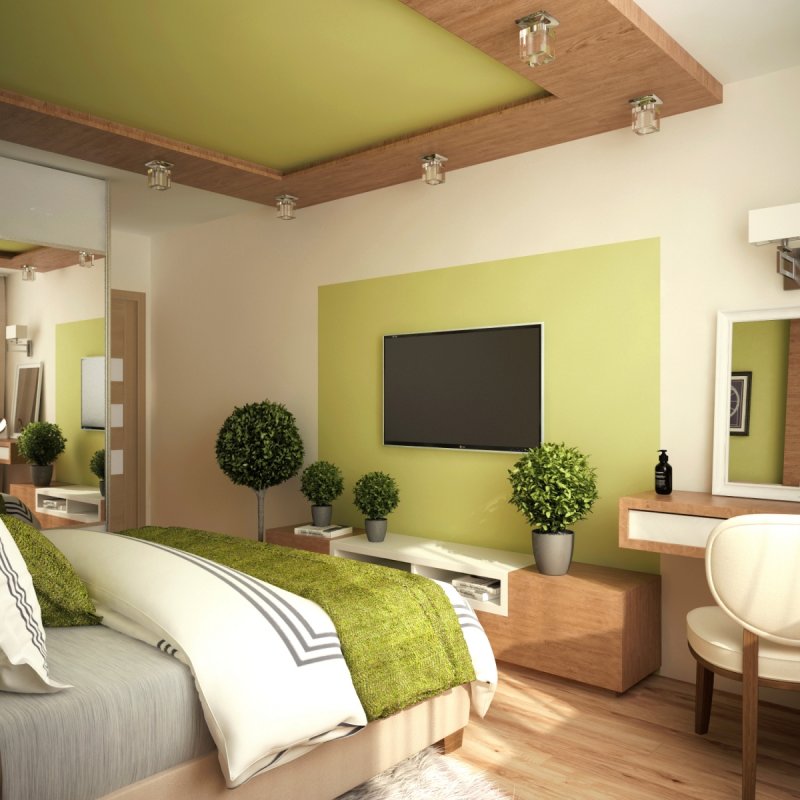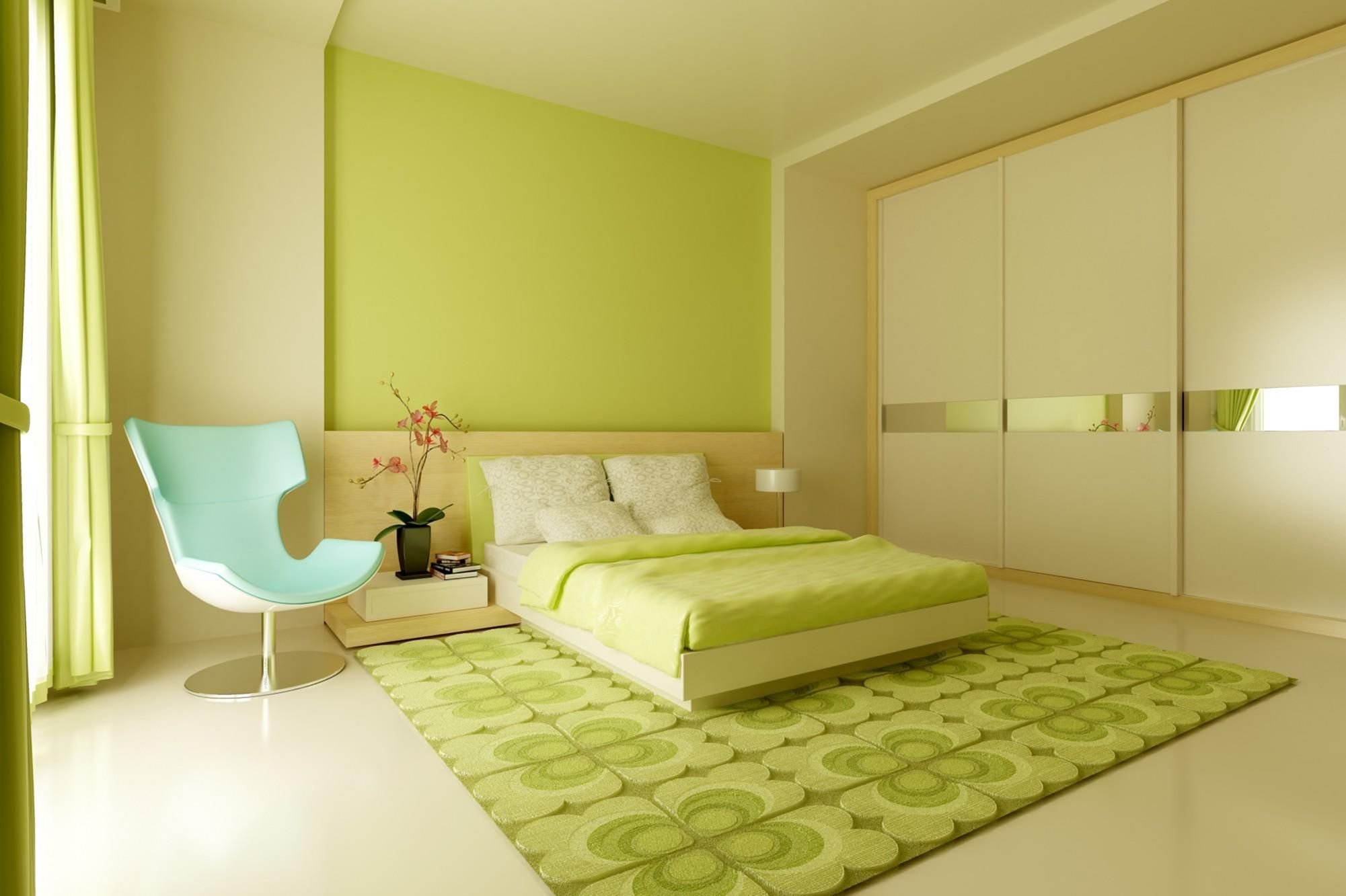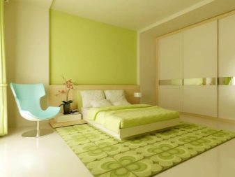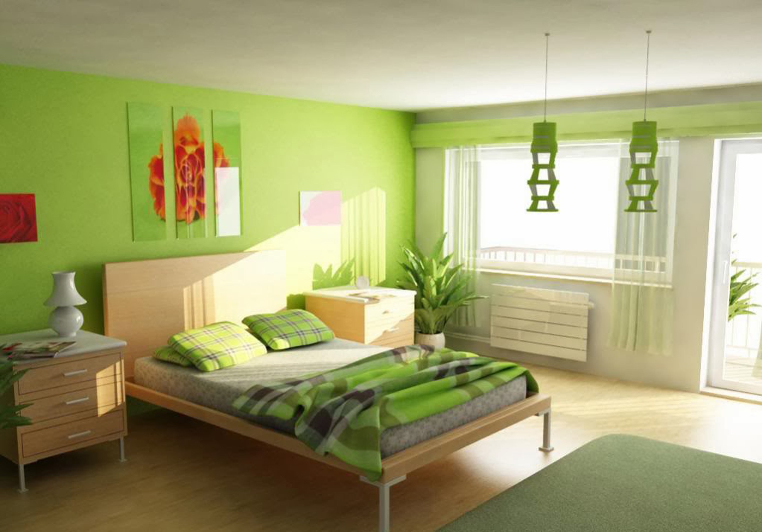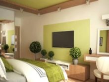Saf yeşil renk olumlu bir his yaratır ve aynı zamanda rahatlatır. Çok pencereli, ışığa doygun odalar için önerilir. Durumu aşırı yüklememek için, kendinizi nispeten az miktarda basit yeşil boya ile sınırlamak daha iyidir. Baskın unsur haline gelirse, daha parlak vurgu tonları bile arzu edilir.