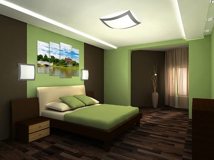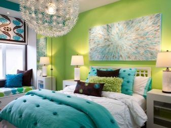 Yeşil ve kahverengi renklerin kombinasyonları, işlevsellikleri nedeniyle övülür. Bu durumda, mobilya, döşeme pahasına kahverengi bir ton getirilebilir. Bazen dekoratif öğeler de kullanılır. Son zamanlarda mavi-yeşil kombinasyonu çok moda oldu. Hemen bir olağandışılık hissi yaratır, ancak temel renklere ek olarak, dengeleyici olanları da tanıtmalısınız: