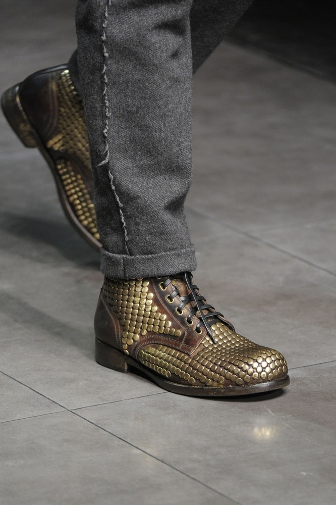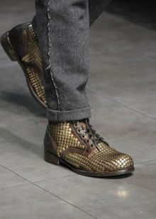 - bot ayakkabı... Aktif bir yaşam tarzına sahip erkekler için abartılı ve şık bir seçenek. Gençler ve olgun beyler için uygun modeller var. Dolce & Gabbana moda evinin botları gösterişli renklere ve sıra dışı bir tasarıma sahip. Uzun modeller skinny jean pantolonlar ve diğer abartılı pantolonlarla iyi gider.