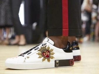 - Spor ayakkabı (spor ayakkabı). Spor severler ve uzun yürüyüşler için mükemmel bir seçenek. Modeller, kural olarak, kombine malzemelerden (deri, süet, kauçuk) yapılır. Dolce & Gabbana spor ayakkabılar, eşofman, chino ve renkli pantolonlarla uyum sağlamak için benzersiz bir şekilde tasarlanmıştır.