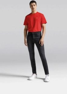 - Mavi kot markadan düz kesim, avantajlı bir şekilde herhangi bir üst ile birleştirilebilir. Düz bir kazak, bir kazak veya bir polo gömlek olabilir. Kot pantolonunuzun altına limonlu bisiklet yaka bir kazak giymenizi öneririz. Görüntü çok şık ve akılda kalıcı olacak.