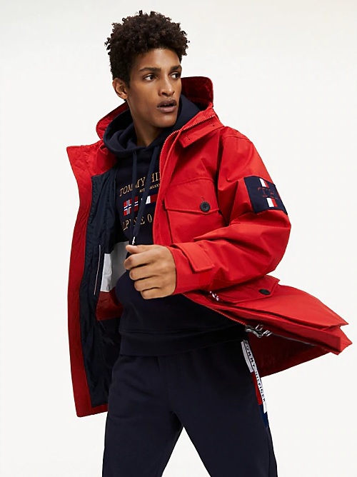 Tommy Hilfiger'ın teklifleri çok sayıda ultra moda çift taraflı bombardıman uçağının yanı sıra rahat parkalar, ceketler, anoraklar, yelekler, yağmurluklar ve aşağı ceketler. Sonbahar dönemi için mükemmel olan denim ceketlerin yanı sıra modaya uygun Nappa deri ceket modelleri tarafından özel bir yer işgal edilmiştir.