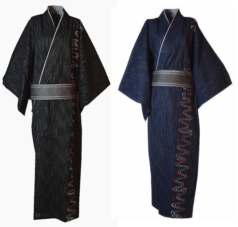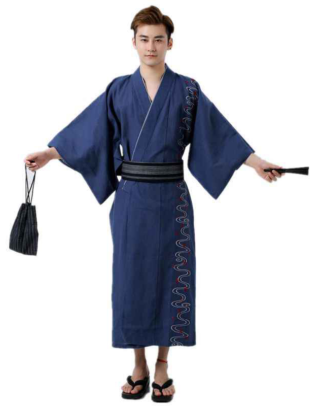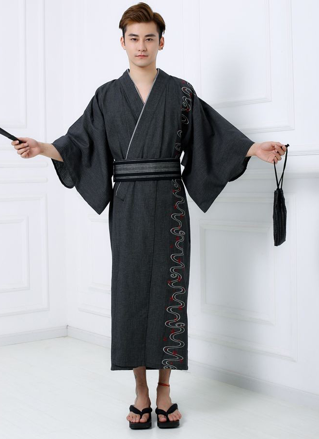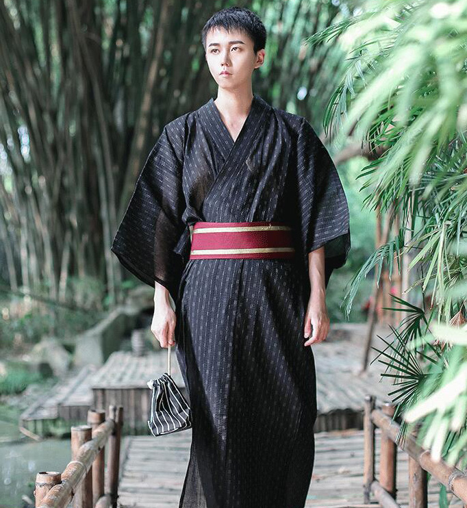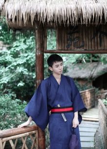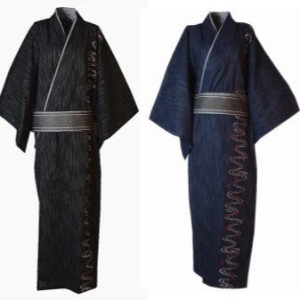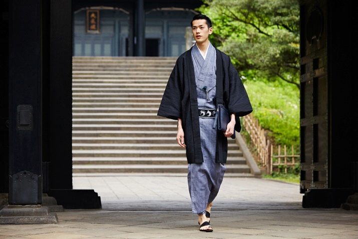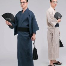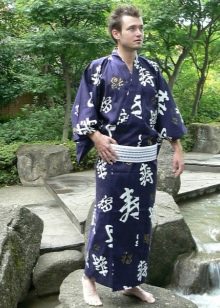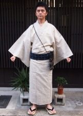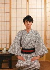 Kadın versiyonu ile karşılaştırıldığında, erkek kimono her zaman daha basittir. Kıyafet, ayakkabılar dahil en fazla 5 parçadan oluşur. Erkekler için geleneksel kıyafetlerin kolları uzun, gardırop öğesinin "gövdesine" bağlı. Daha darlar, o kadar derin değiller. Obi kemerini bağlarken belde, kol kenarının hemen altında bulunur.