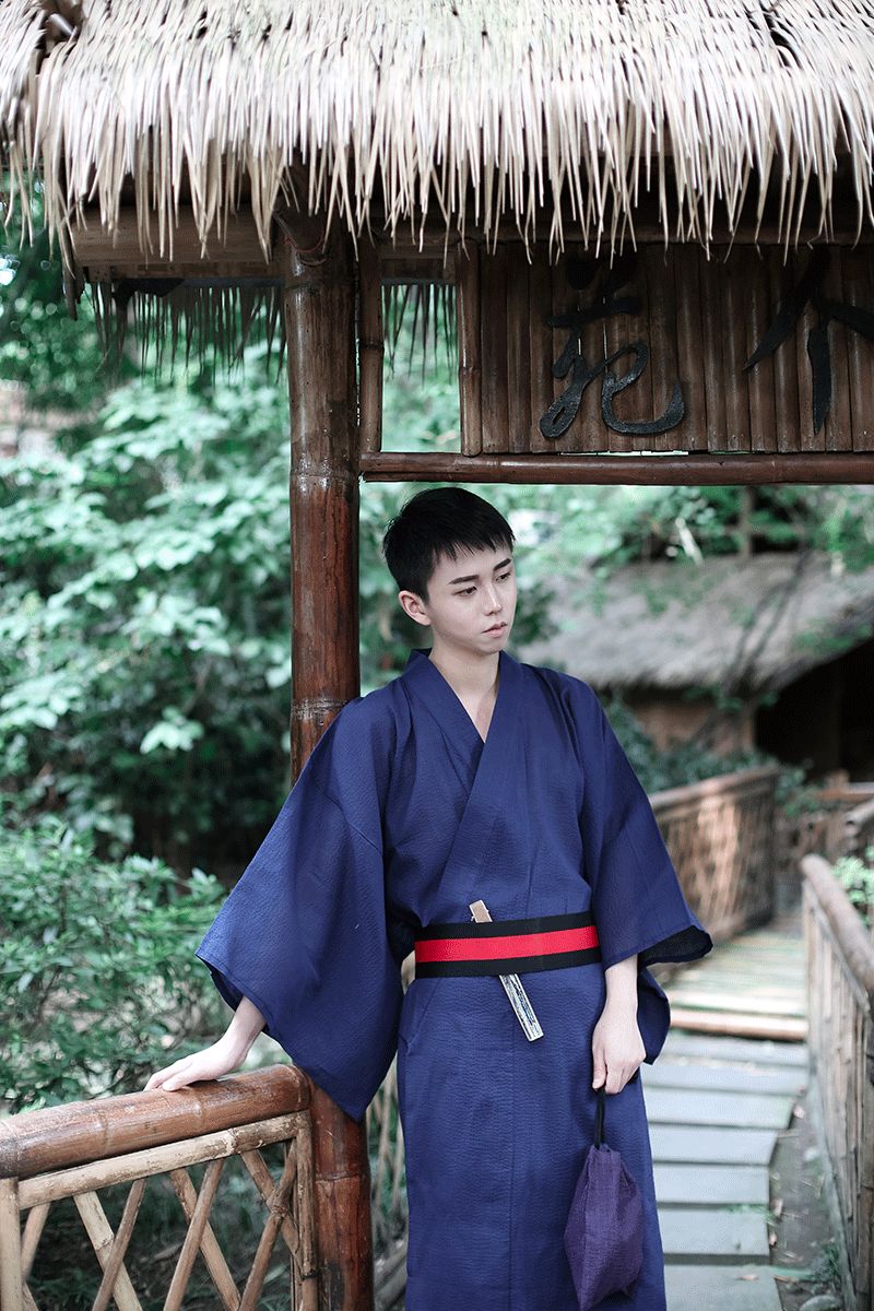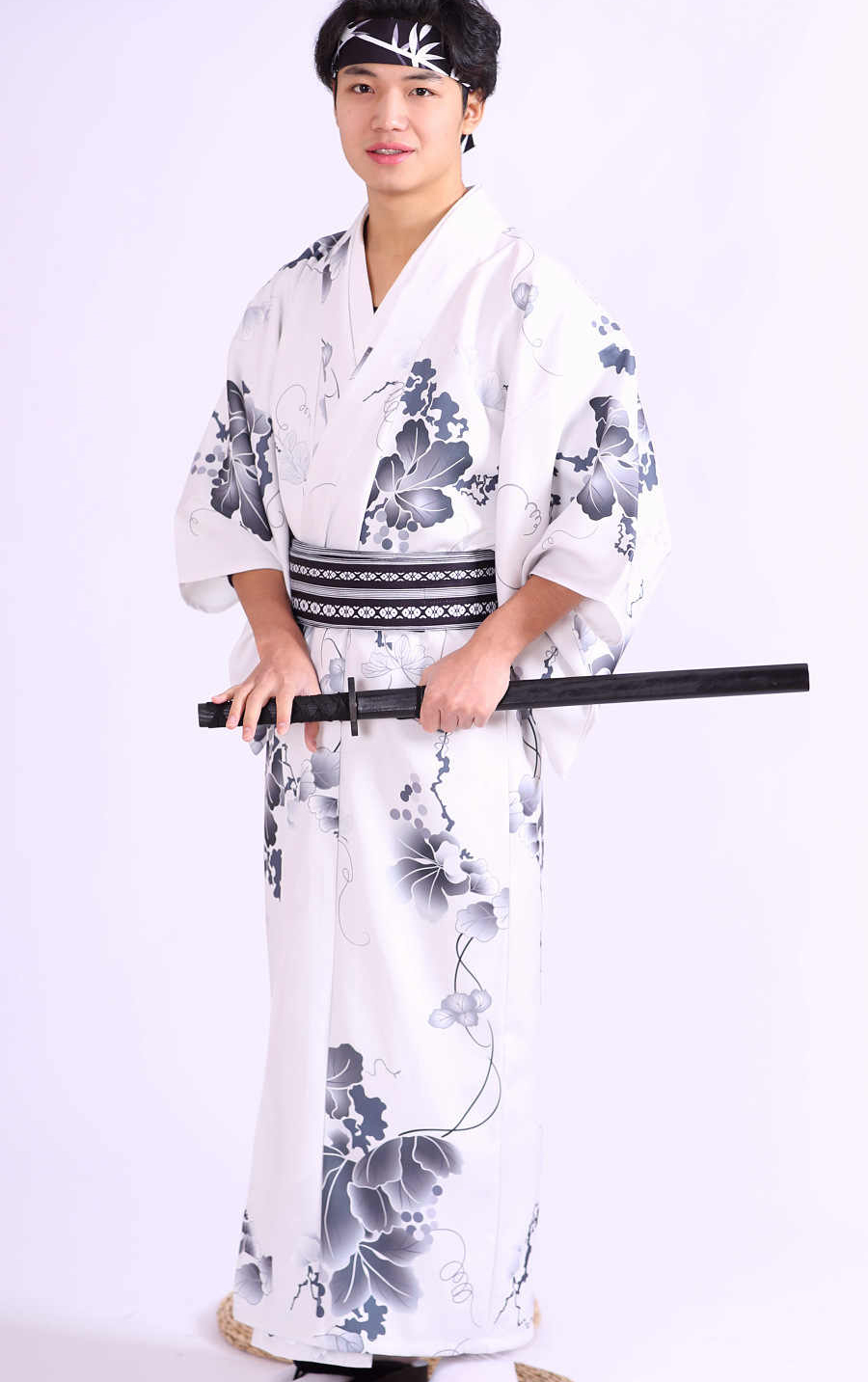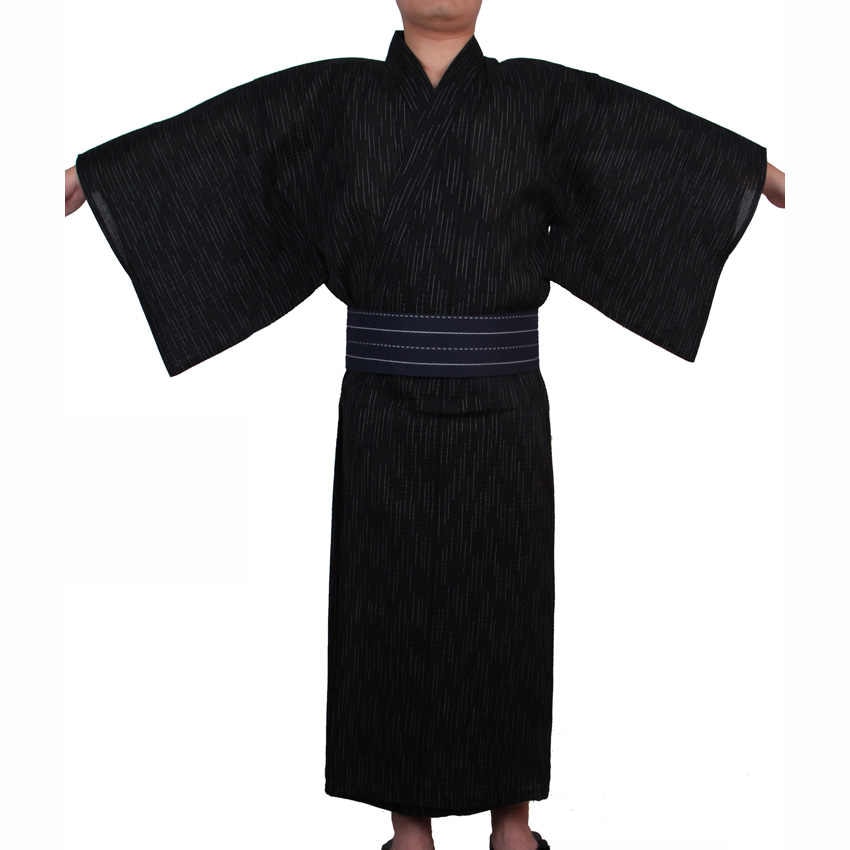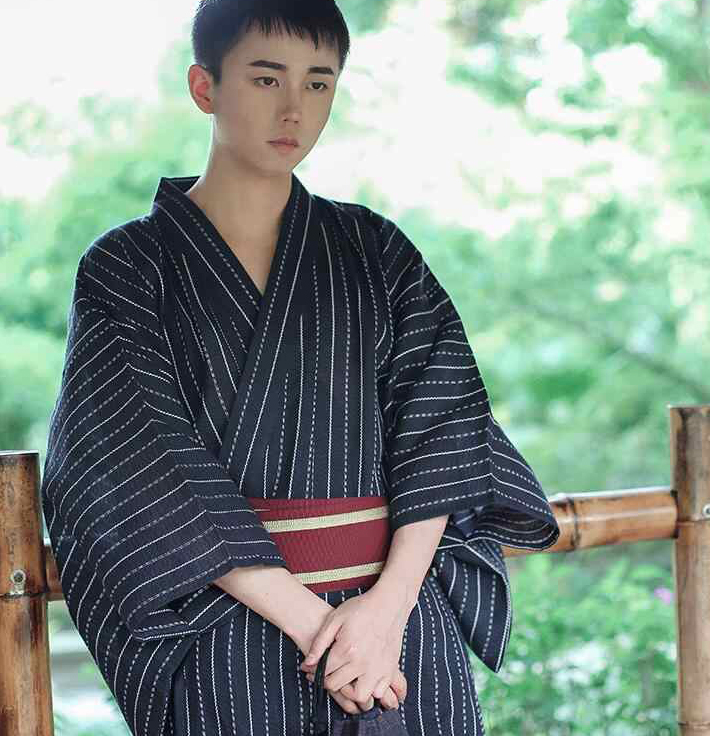 Kadın versiyonu ile karşılaştırıldığında, erkek kimono her zaman daha basittir. Kıyafet, ayakkabılar dahil en fazla 5 parçadan oluşur. Erkekler için geleneksel kıyafetlerin kolları uzun, gardırop öğesinin "gövdesine" bağlı. Daha darlar, o kadar derin değiller. Obi kemerini bağlarken belde, kol kenarının hemen altında bulunur.